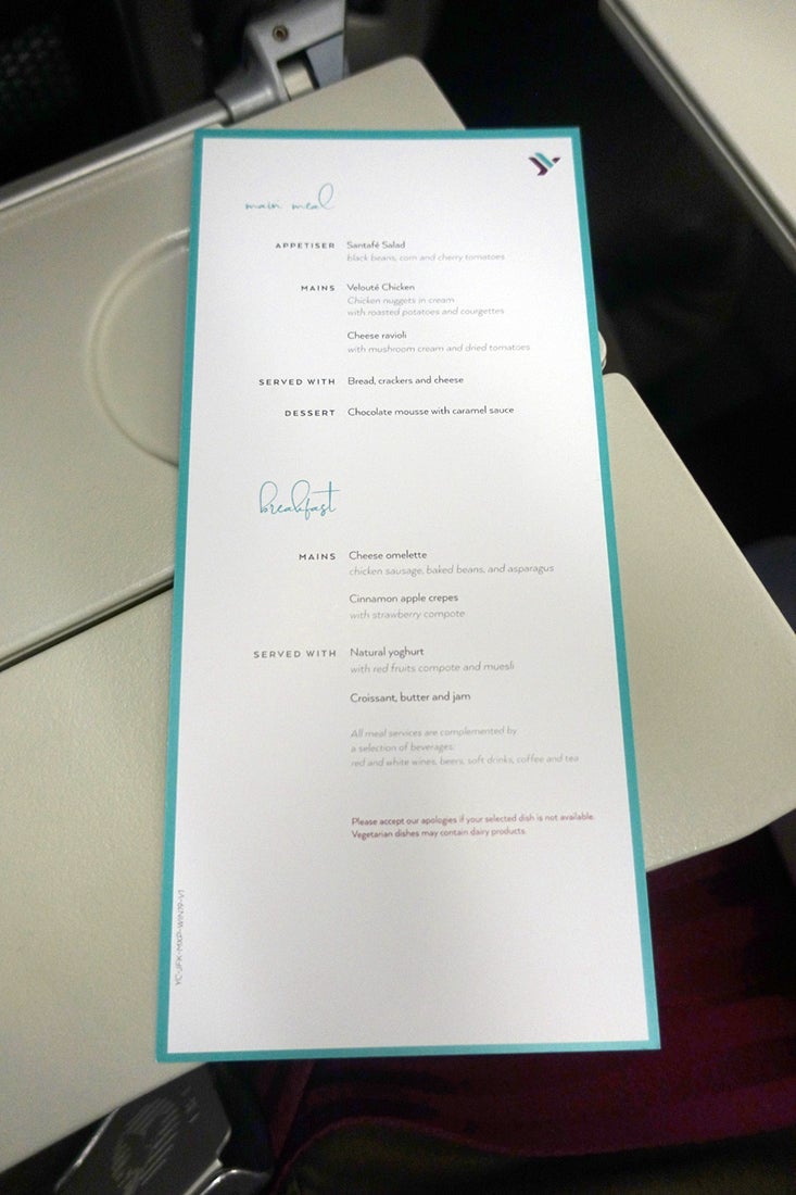First, the good news: Air Italy provides menus in coach class, and they are written in proper English. They were distributed shortly after takeoff along with headphones.