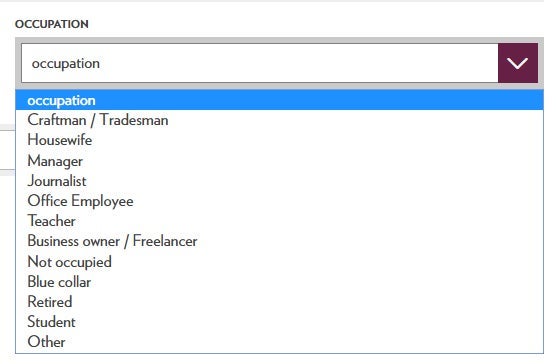 Opening an account involved telling Air Italy what my occupation was, for some reason. The drop-down menu of possible professions ranged from offensive ("Housewife" — welcome to the dawn of the jet age, circa 1959!) to absurdly broad ("Blue Collar") to weirdly specific ("Journalist" — I'm flattered that you recognize me, Air Italy, but why? Why no entries for, say, plumbers or librarians?) And that's before we even look at the ungrammatical "Craftman" or the bizarre "Not occupied," a direct and nonsensical translation of non occupato, a seldom-used Italian term for "unemployed." Whew.