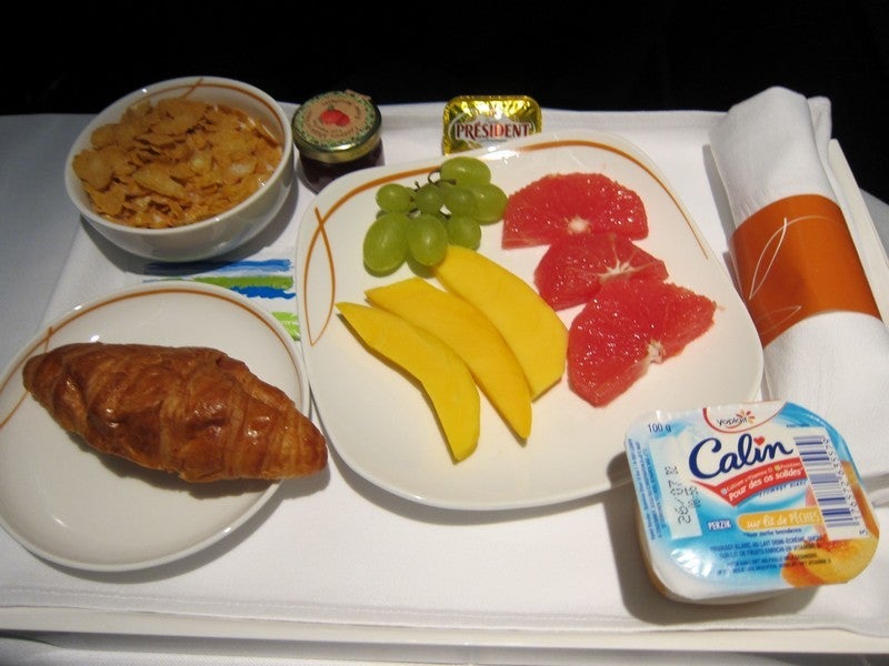 I was woken up for breakfast, which was a nice tray of fruits, cereal and yogurt. After I finished, they also asked if I'd like an omelet, which I declined - to me airlines and eggs rarely mix to make an enjoyable combination. Plus, I was just happy sipping on my instant coffee (which actually wasn't bad) and getting ready to hit the ground running.