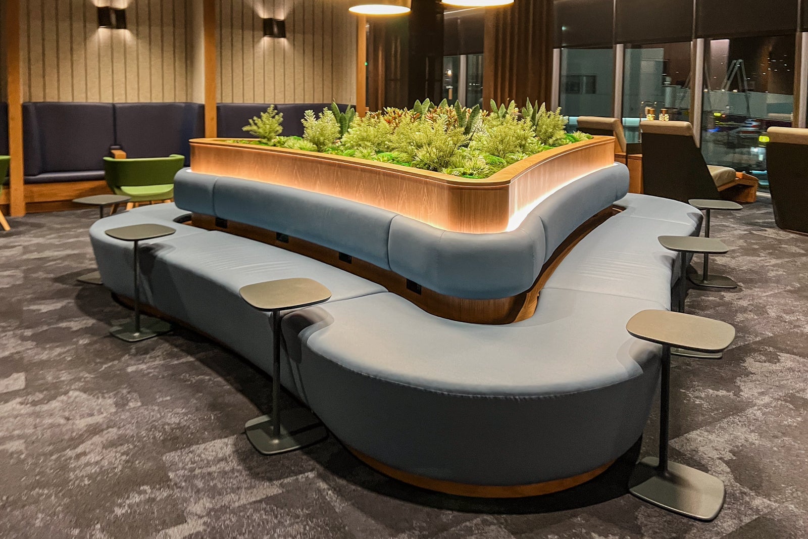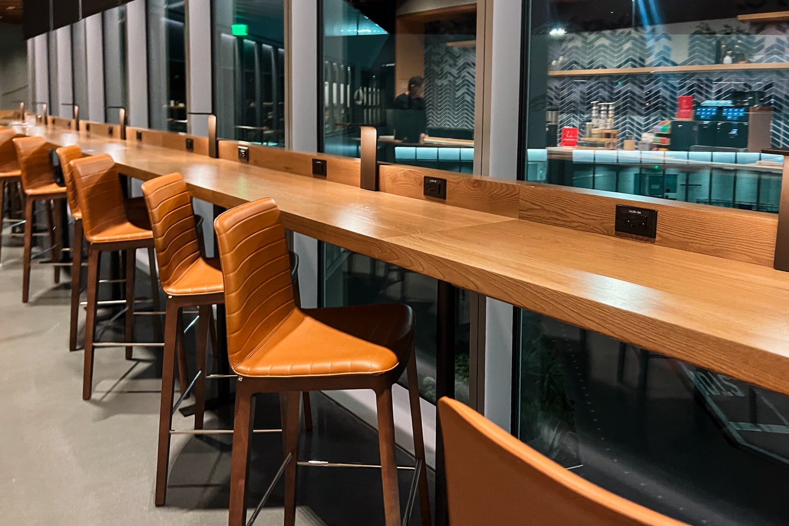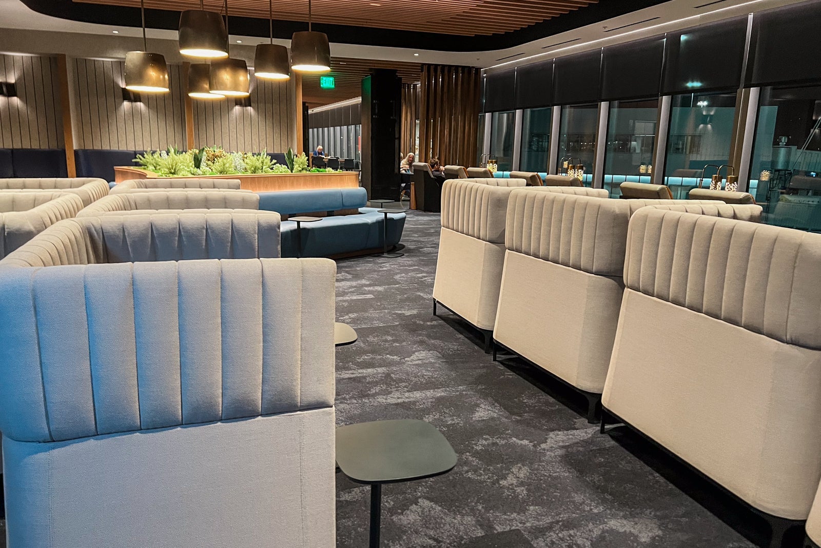 The new lounge comes in at a whopping 11,000 square feet and has 55% more seating than the old lounge in Terminal 2.