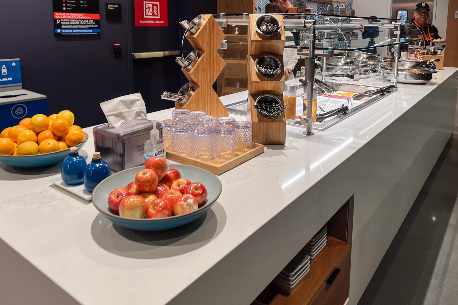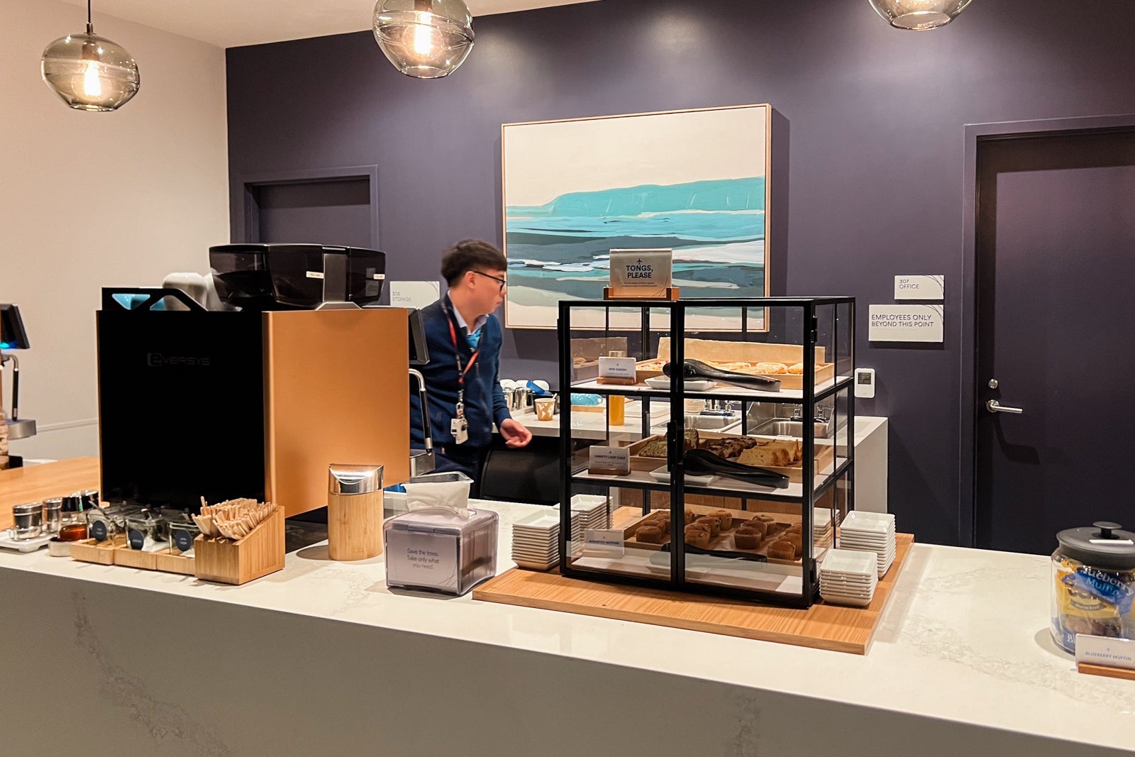 There was also a beverage station offering two high-end Eversys coffee machines, a Coca-Cola soda machine, teas and a few other treats. This lounge serves coffee and espresso from San Francisco-based Ritual Coffee Roasters. The company is independent and woman-owned, and it's a nice touch in a San Francisco lounge.