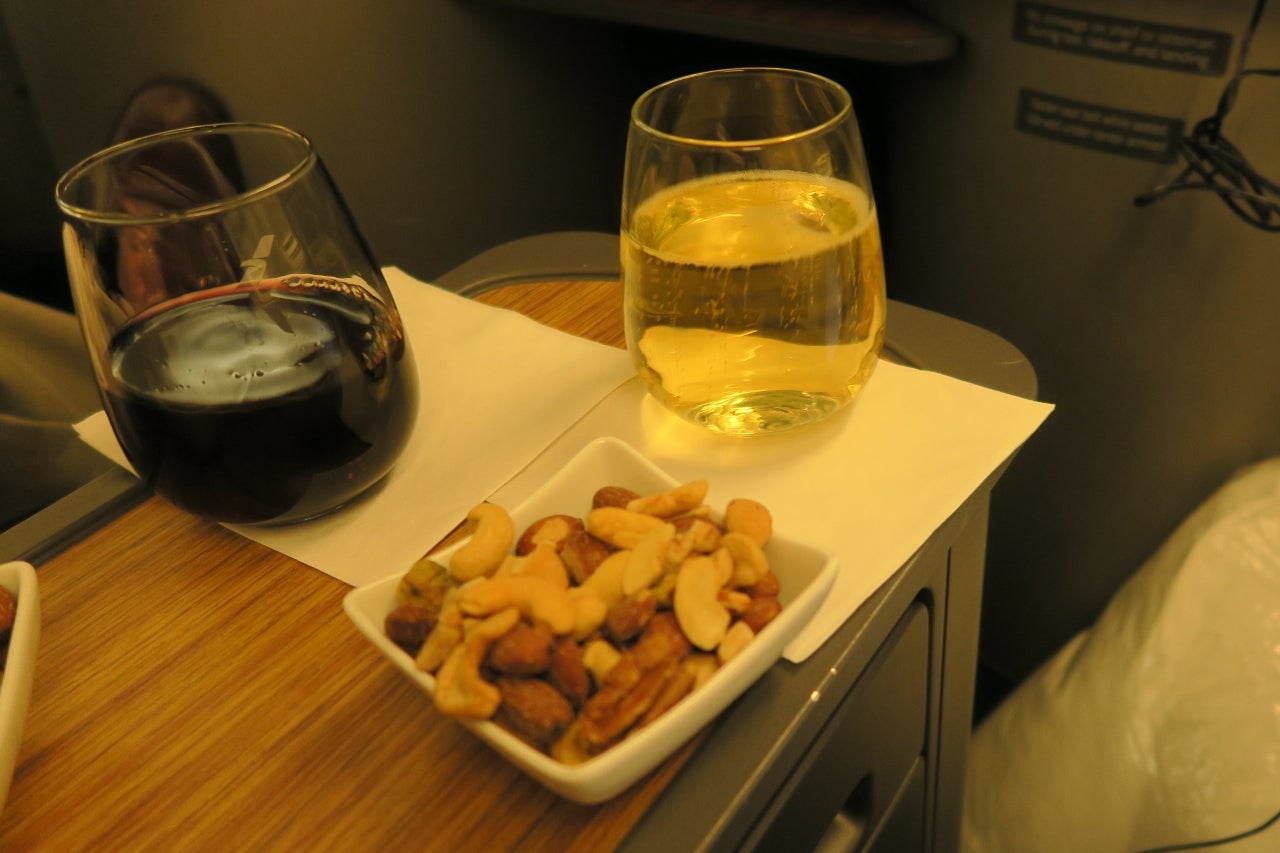 Drink service with warm nuts began 35 minutes after take-off.