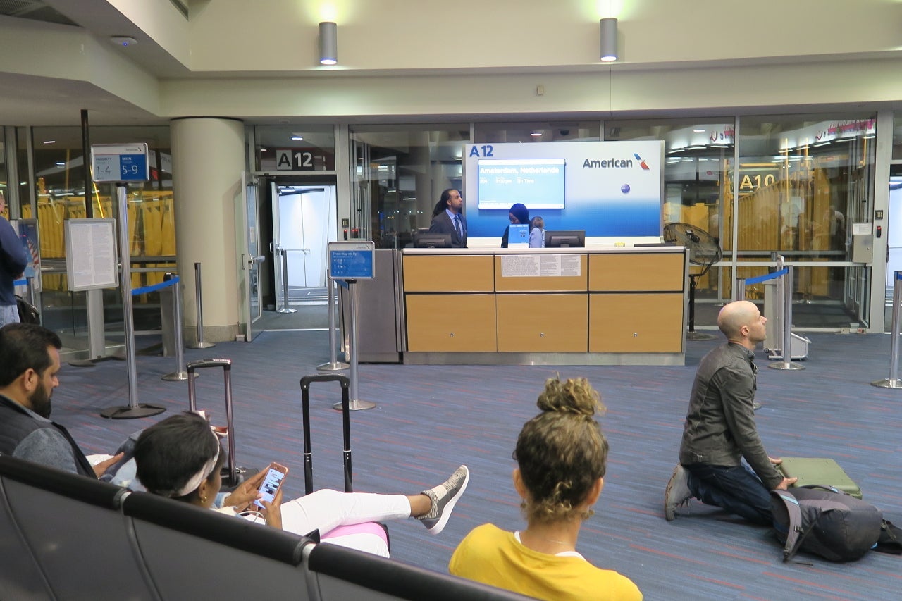 Three 9:00pm departures were boarding at adjacent gates: One to Phoenix (PHX), one to Manchester (MAN) and mine to AMS. Boarding began on-time but without any announcement or group being called. I was the second person to board, so I can't say how the rest of boarding went — but bags did need to be gate-checked near the end of boarding.