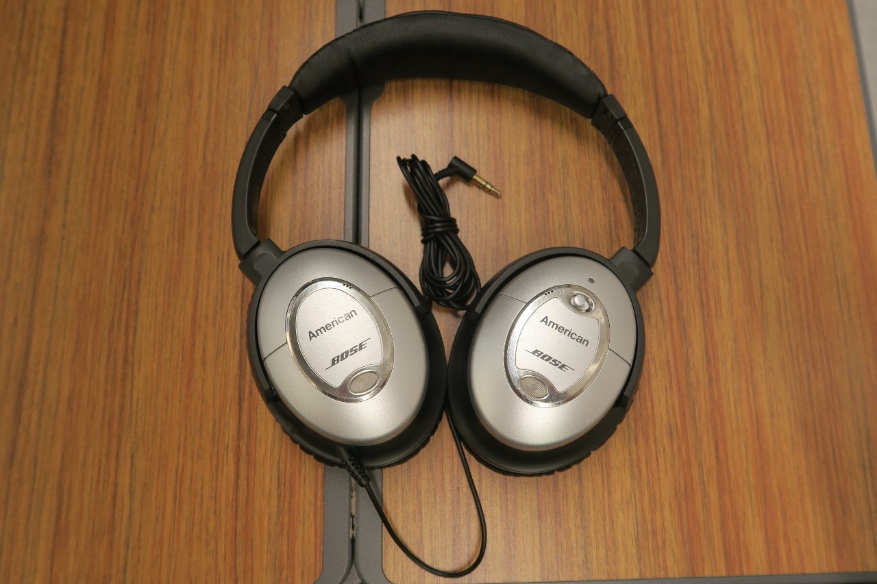 Bose headphone were at some seats during boarding, but were passed out to other seats as boarding was concluding. The headphones were different from the folding Bose headphones I've received on other American business class flights, but I liked these more as the noise cancelling seemed to work better.