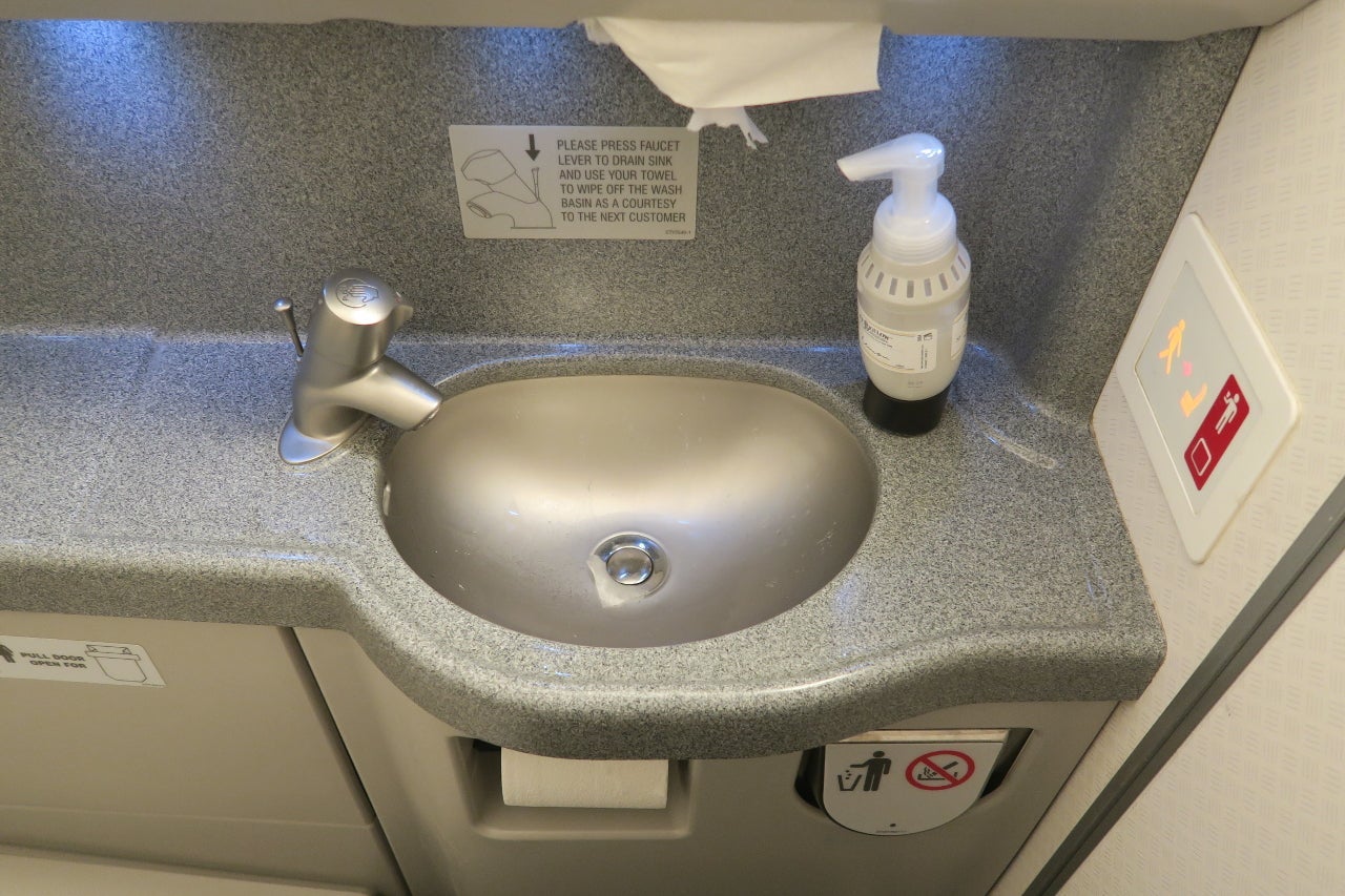 There was one lavatory for the business class cabin located at the front of the cabin. There weren't any special amenities available.