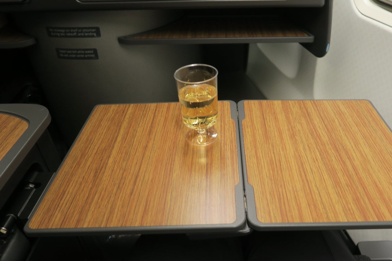 A pre-departure drink of orange juice, water or champagne was offered during boarding.