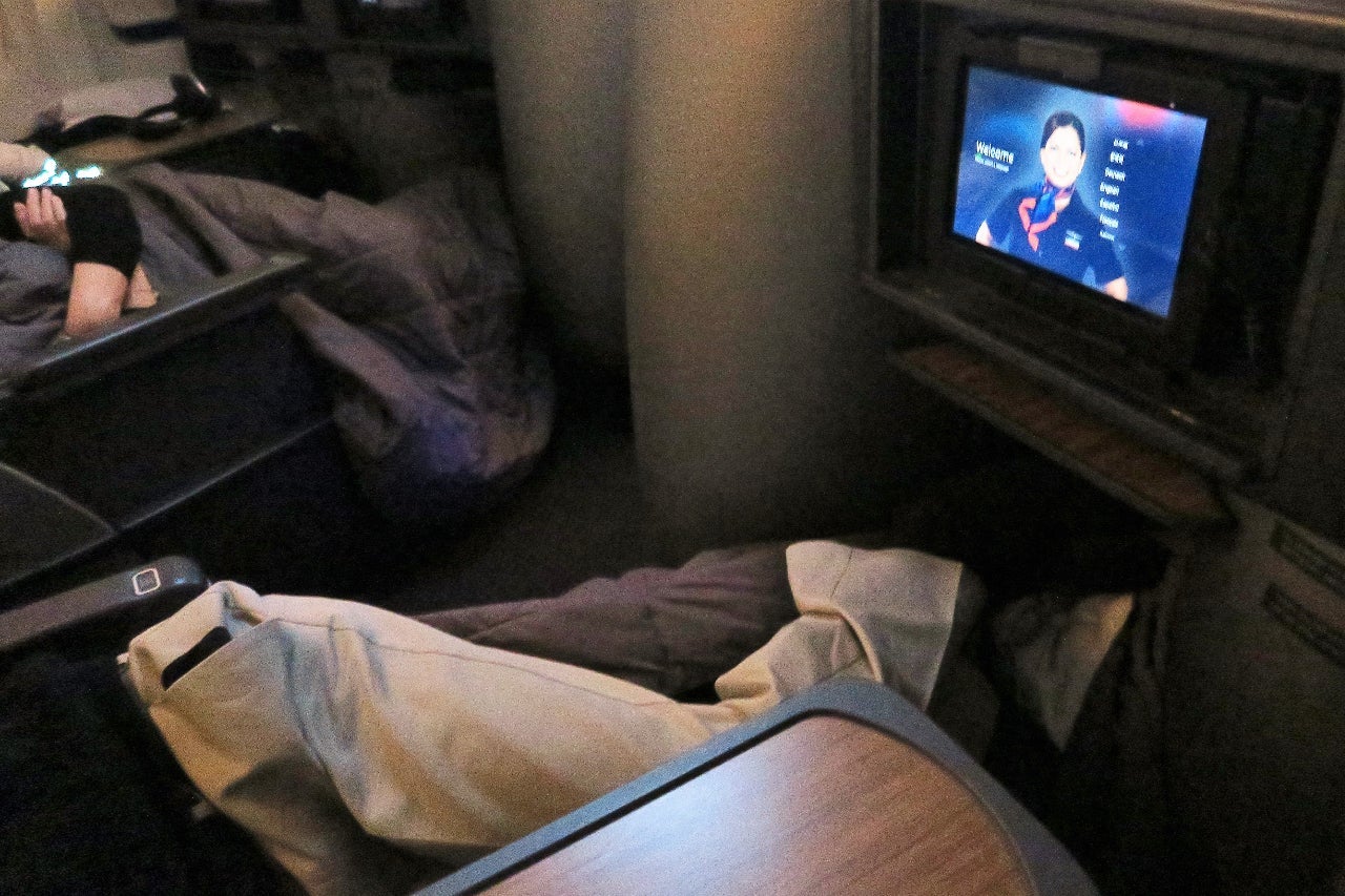 Although I found the seat comfortable enough for sitting and lounging, I could only sleep comfortably on my back. Although the armrest along the window can lower, it doesn't lower enough to be flush with the seat and the center console separating the seats makes it uncomfortable to sleep toward the other direction.