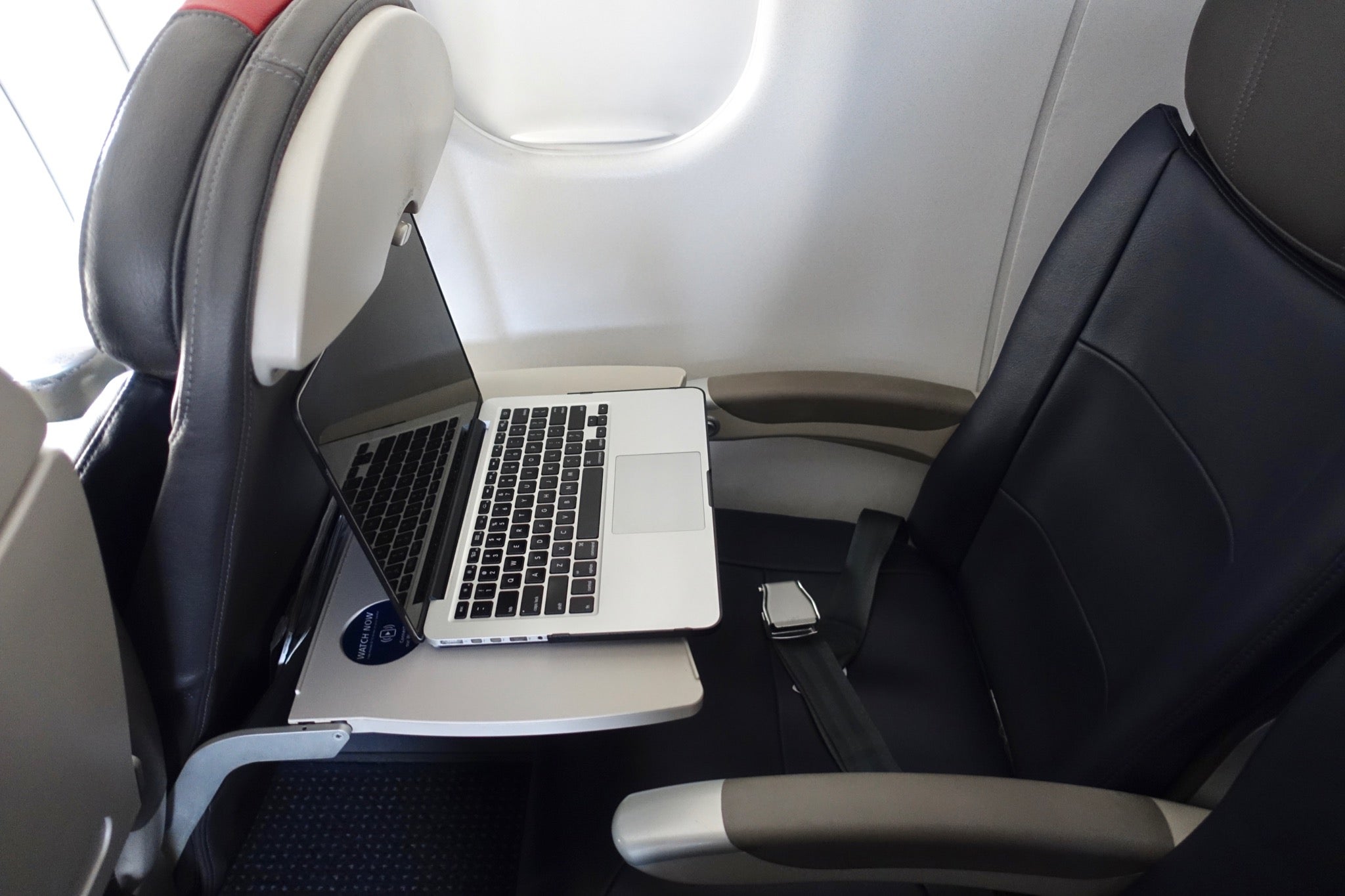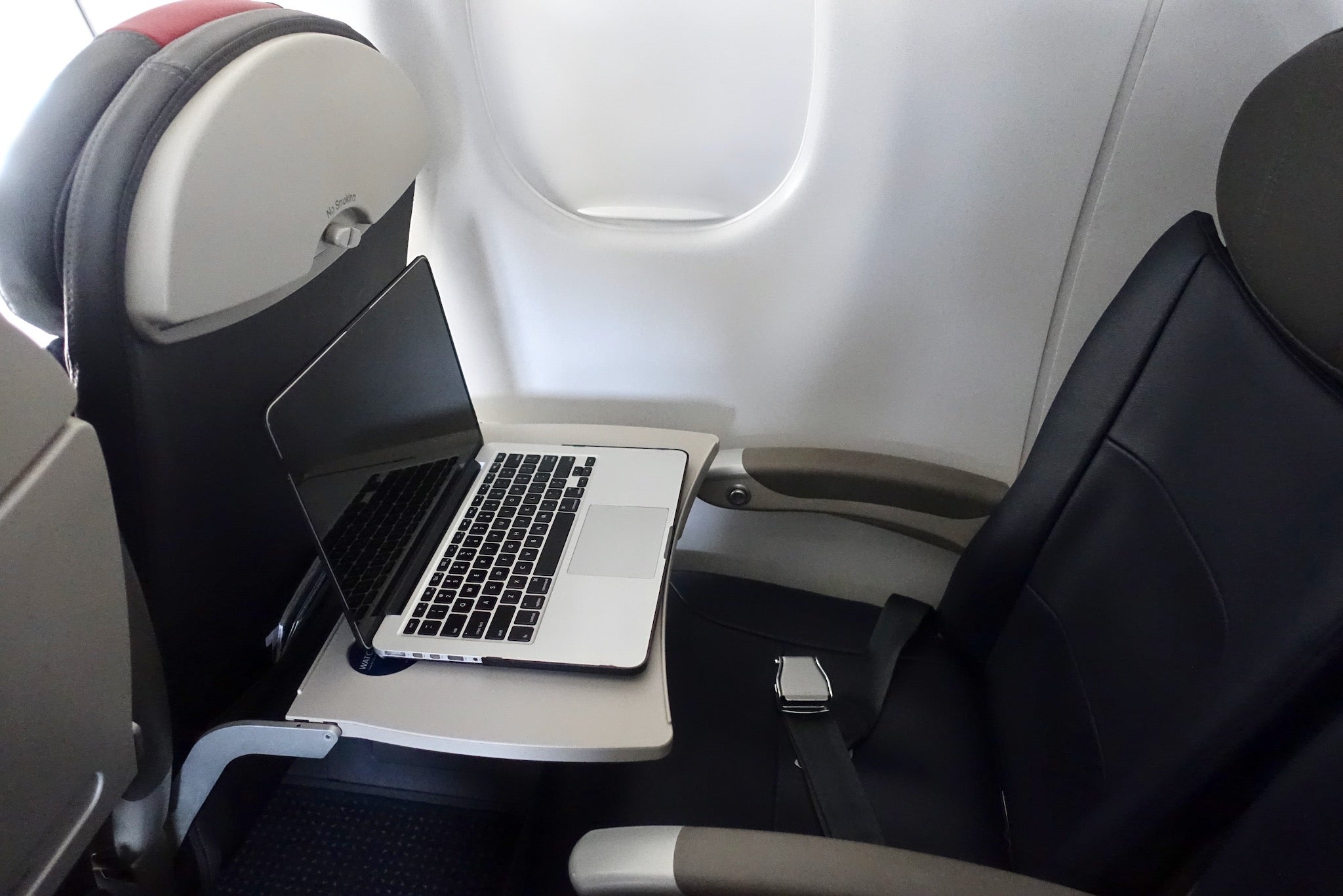 The tray tables were sizable, so as long as the person in front of you doesn't recline their seat — which hopefully they won't do since it's such a short flight — you should have no trouble working comfortably on your laptop.