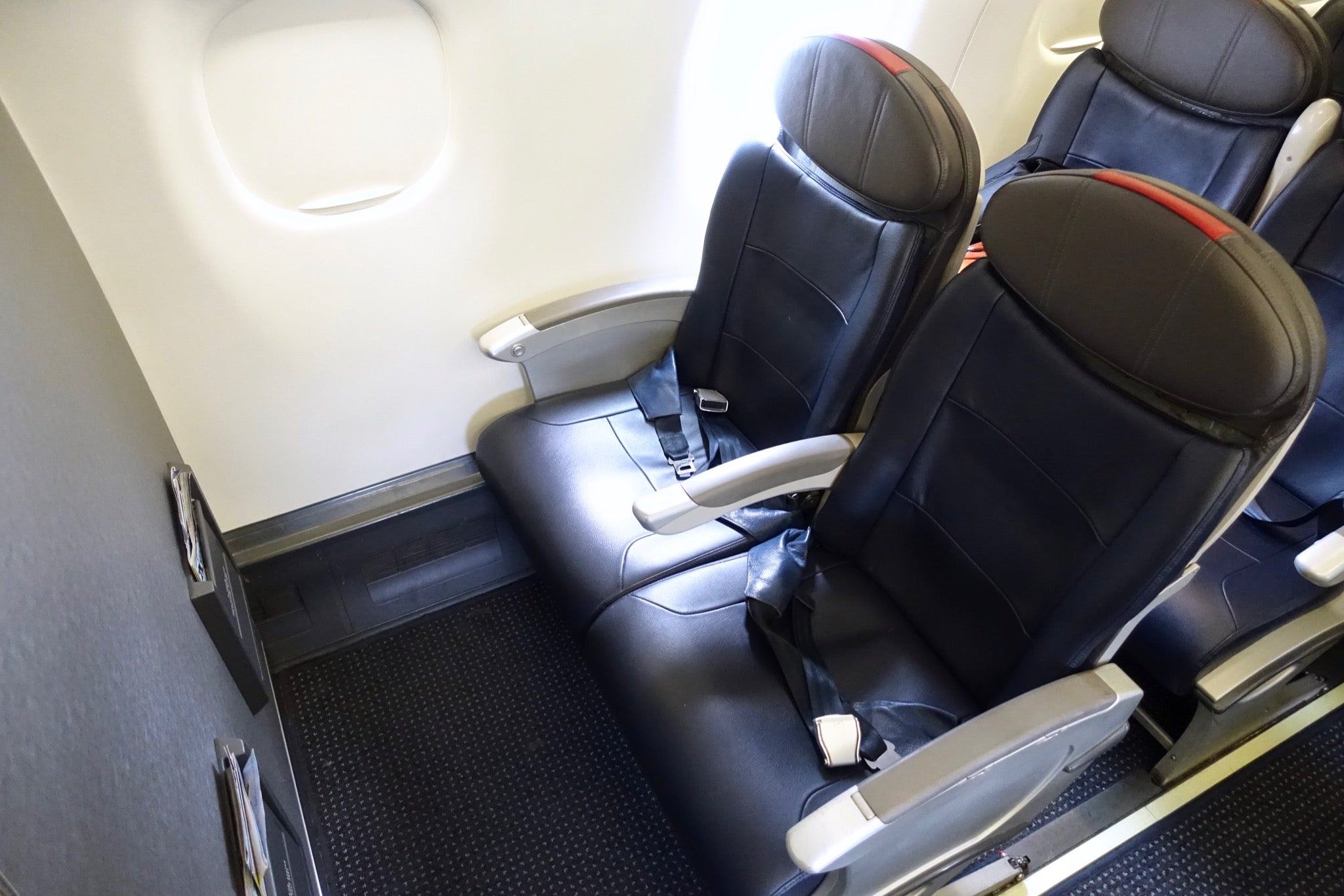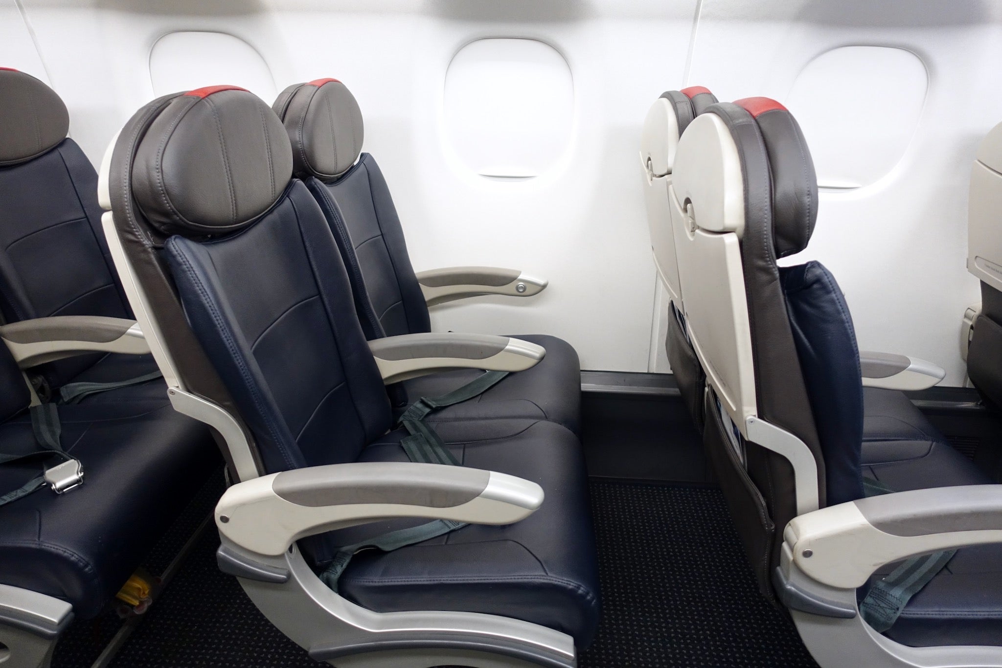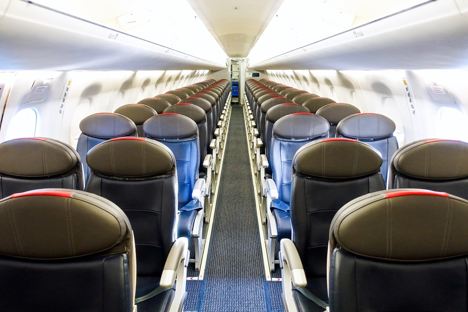 The E190s are the smallest aircraft in American's mainline fleet, with 11 seats in First, 8 in Main Cabin Extra and 80 in the main cabin. Much like a train, economy seats were in a 2-2 configuration.
