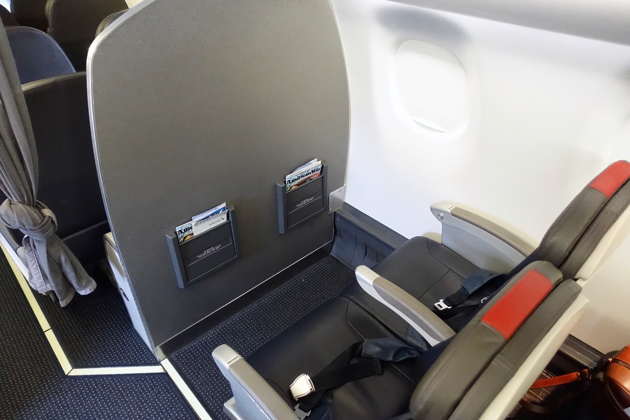 Fortunately for me, that never became an issue as my elite status landed me a Main Cabin Extra seat — in this case, 5F, a window seat in the bulkhead row. Unlike most American Airlines planes, there wasn't a dedicated Main Cabin Extra section — the only other Main Cabin Extra seating was in the emergency exit row. These seats were just as wide as regular economy seats, but featured 34 to 36 inches of pitch.