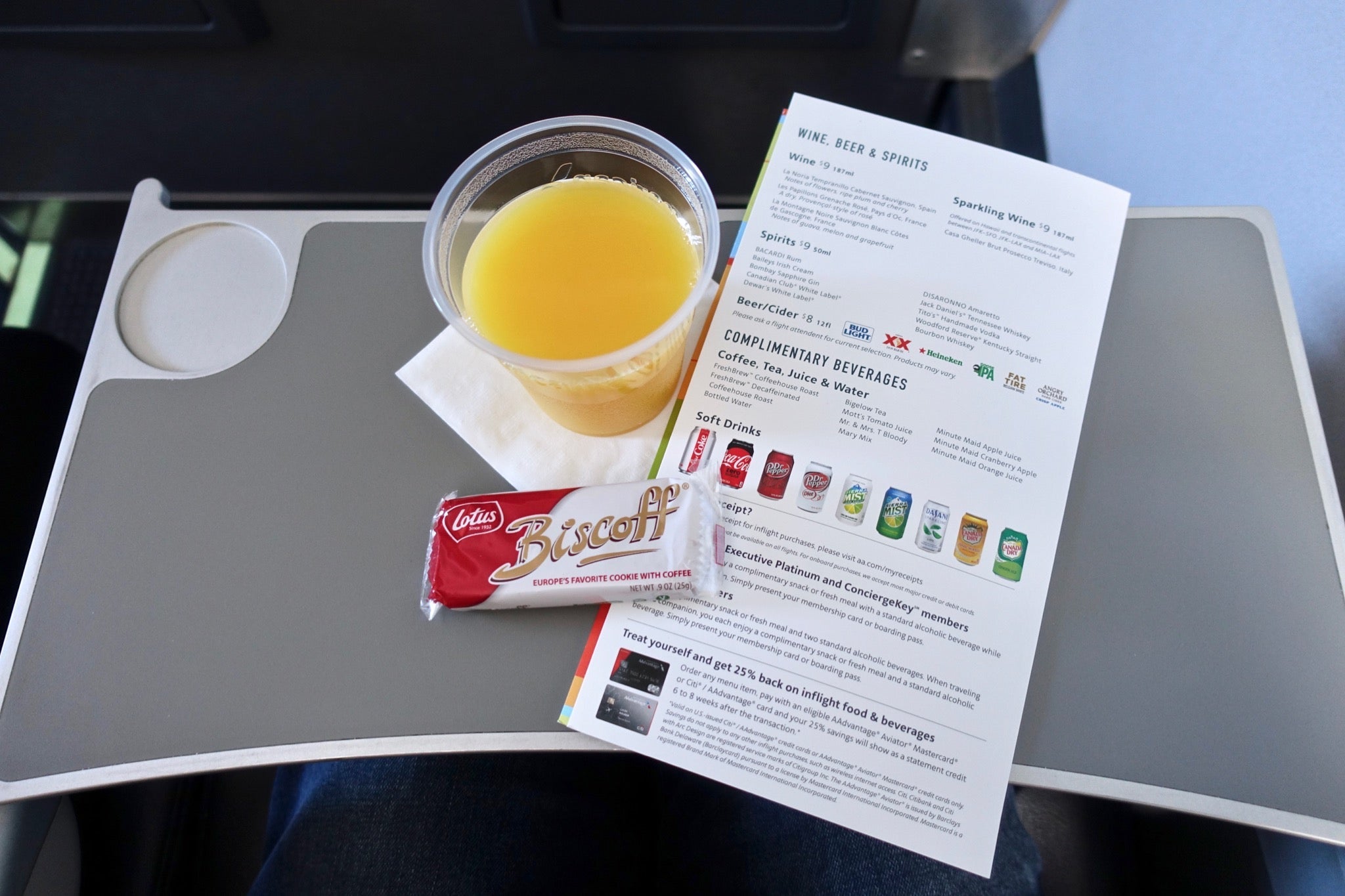 I ordered a cup of orange juice, which was accompanied by a Biscoff cookie. In addition to the free beer and wine, the airline specifically advertises free snacks on shuttle routes, so I was hoping it'd be something a bit more substantial. Delta, for instance, offers shuttle passengers free bagels in the mornings and enhanced snacks the rest of the day.