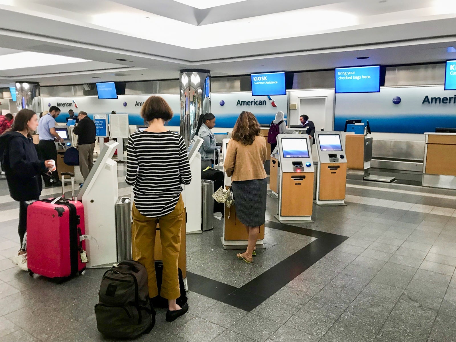 I arrived at LaGuardia around 8:15am for my 10am departure. I found American's check-in area to be fairly empty for a peak travel day. There were over 30 kiosks available for checking in, issuing boarding passes and printing bag tags. Overhead monitors directed passengers toward the counters for bag drop when finished.