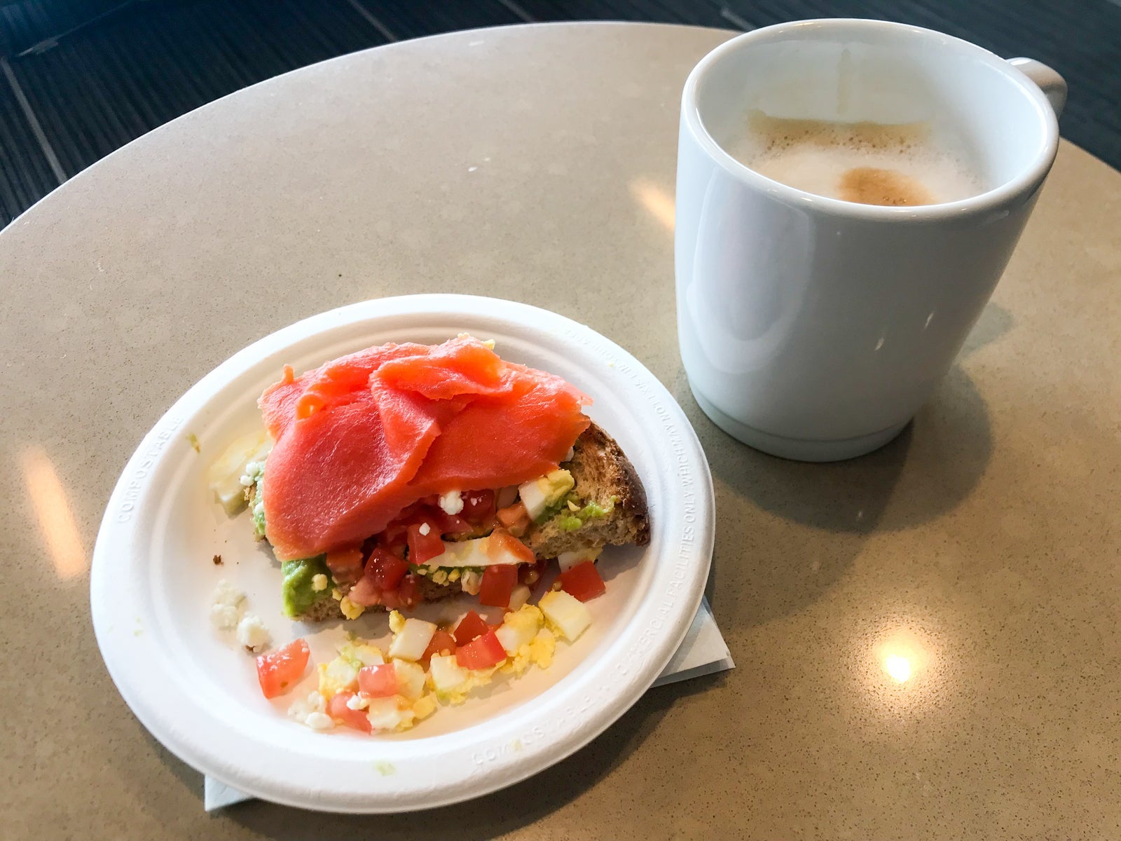 Because I had some time to spare before boarding, I decided to check out the Admirals Club near gates D1 and D2 for a quick breakfast. I was able to enter the club using the Citi® / AAdvantage® Executive World Elite Mastercard®, which grants both primary card-holders and authorized users access for themselves and up to two guests (though beginning later this year, you'll need to present a same-day boarding pass on Oneworld metal to get in). Because American doesn't offer complimentary access to domestic first-class passengers, the lounge experience does not have any weight in the scoring of this section.