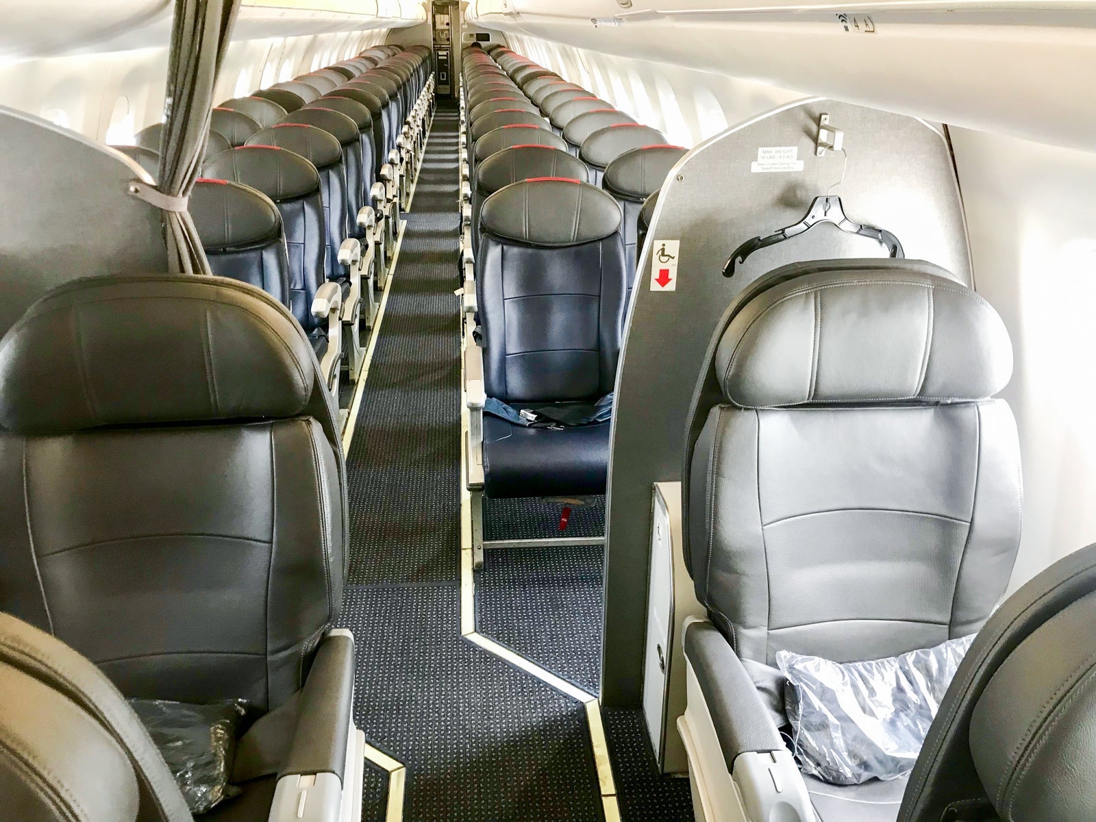 I was really looking forward to experiencing the 1-2 configuration found on the majority of Embraer first-class cabins. As I stepped aboard the aircraft, my first impression of American's interior was definitely positive. The cabin felt clean and well-kept -- minus a few pen markings on the back of the leather chair in front of me, it was virtually spotless.