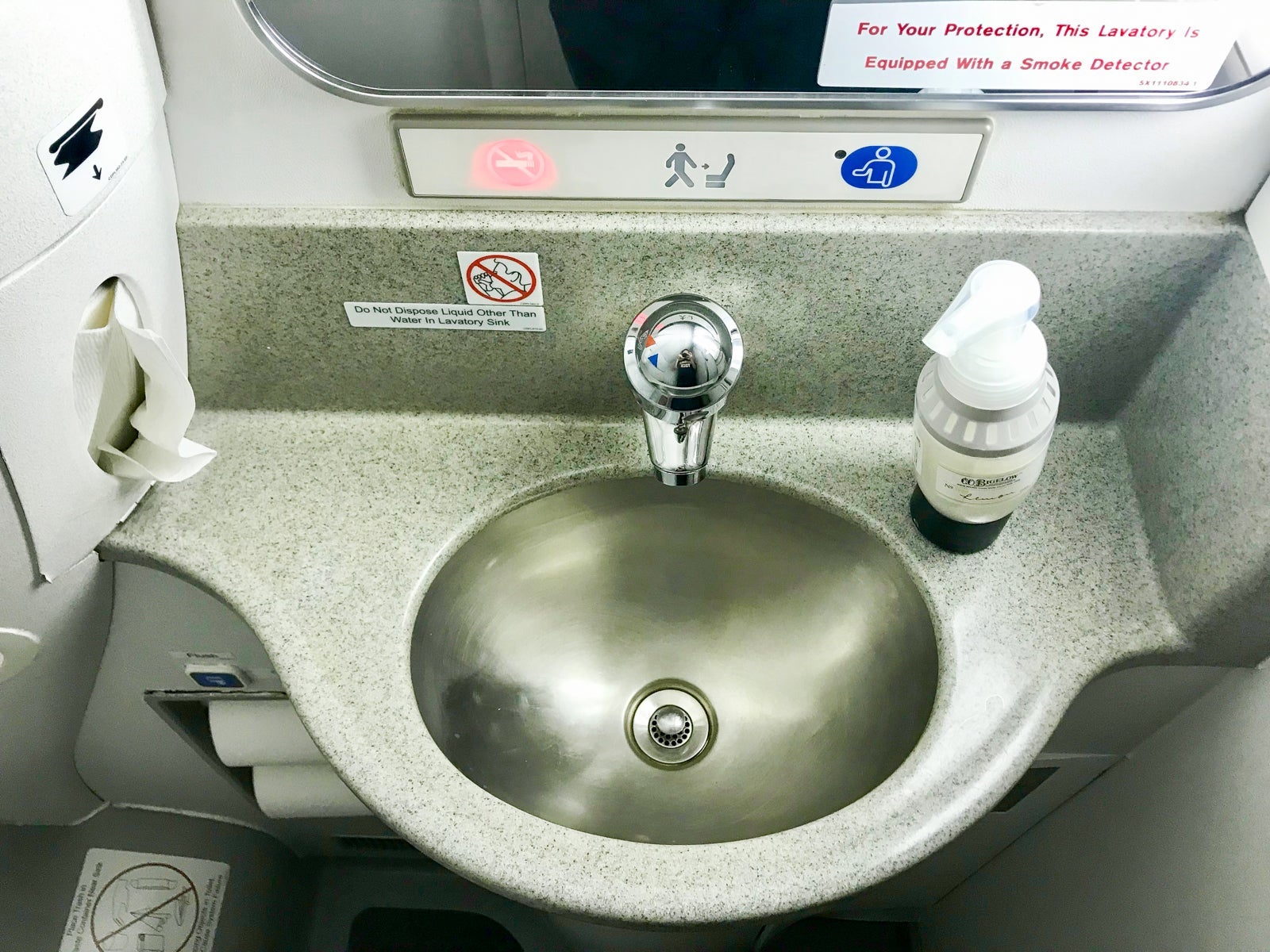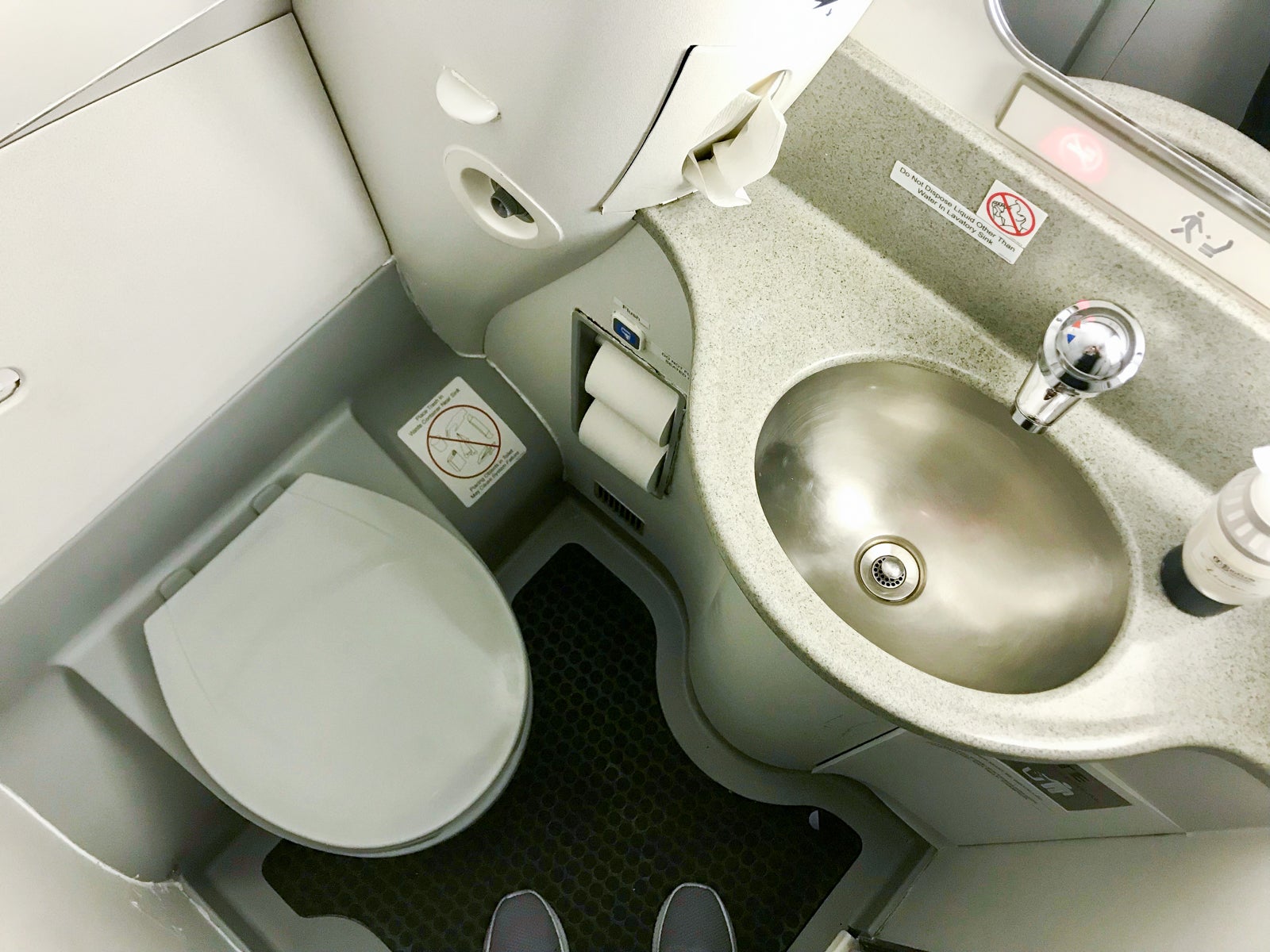 It didn't have any special amenities, though, and was indistinguishable from the economy-class bathroom.