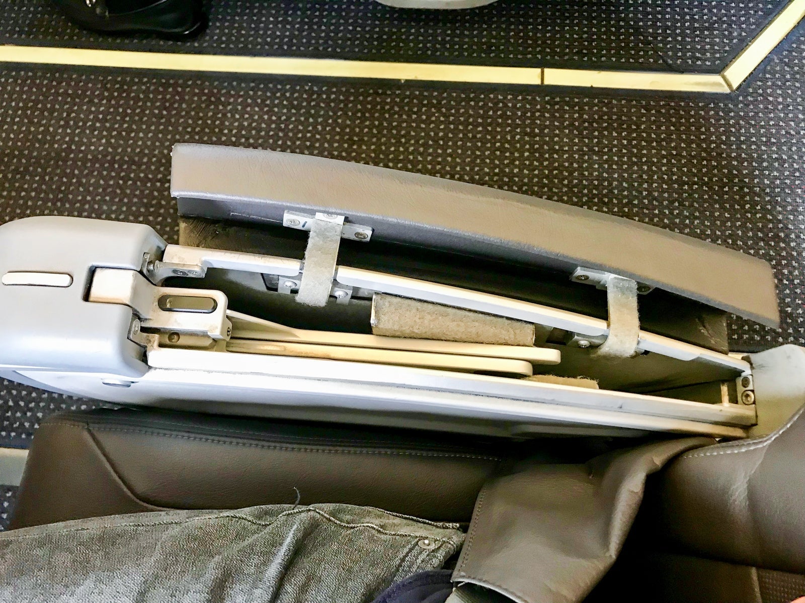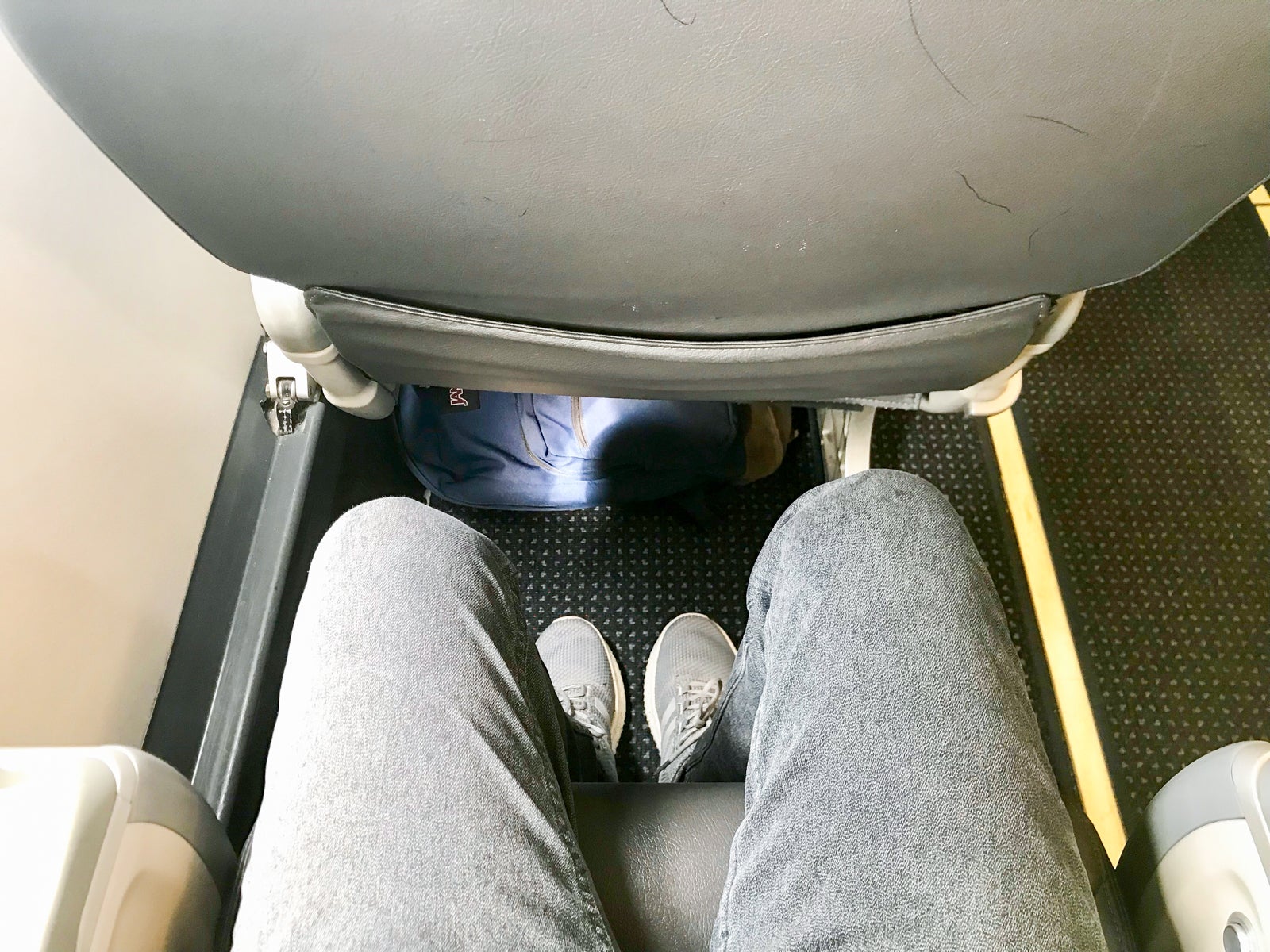 While 19 inches is not a particularly wide seat by mainline first-class standards, the seat offered a generous 37-inch pitch that made for ample legroom. The underseat storage was large enough to fit a standard day backpack without any legroom constriction.