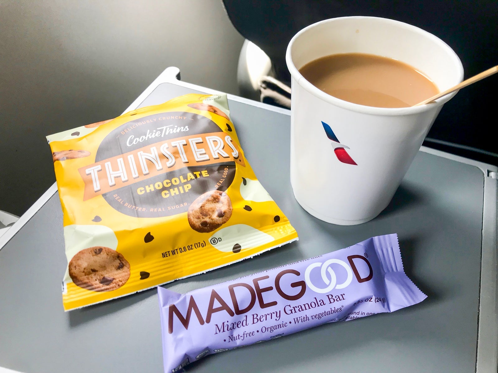 A few minutes later, she was back in the aisle delivering our beverages. I had a cup of coffee to accompany the pair of snacks I chose from the basket. The coffee was decent, and the brand-name snacks provided plenty of sustenance for a short hop of less than an hour.
