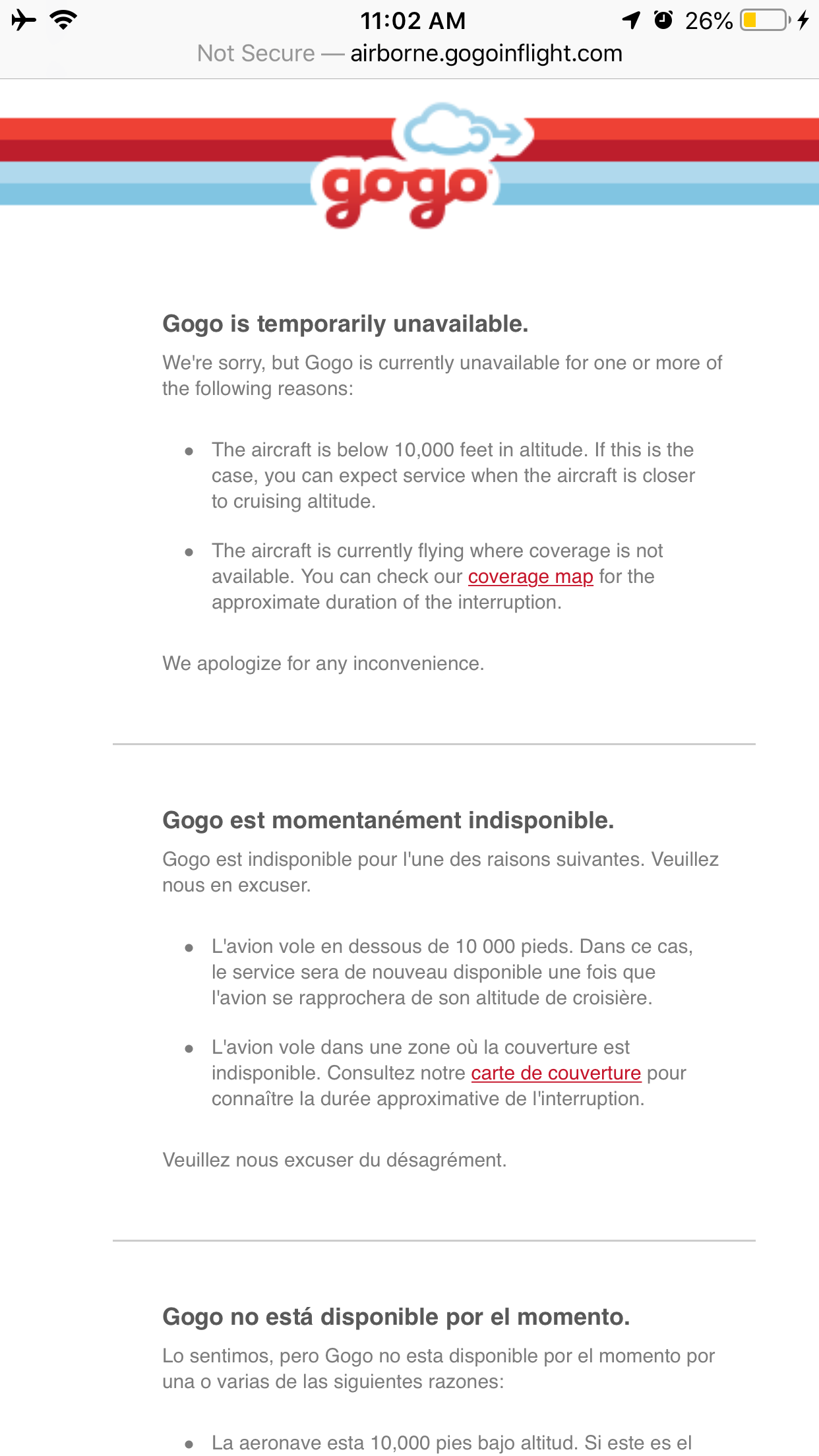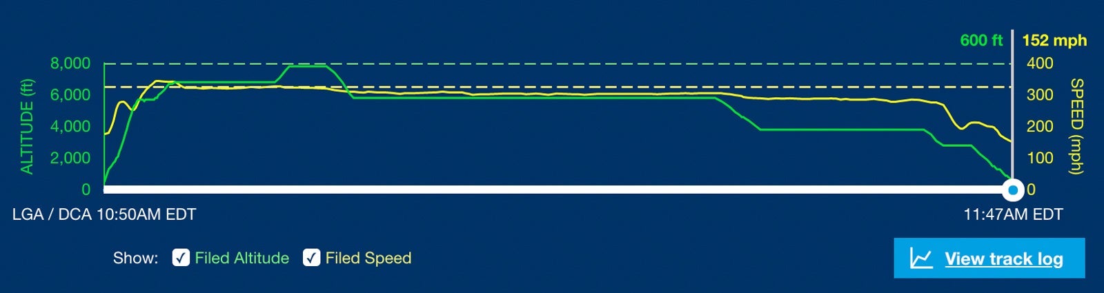 On the topic of connectivity -- through no fault of American's -- the Wi-Fi was inoperative for the entire duration of the flight. Due to strong storm cells scattered along our flight path between New York and Washington, our flight plan had us cruising at unusually low altitudes of between 5,000 feet and 7,000 feet for the entire 57-minute journey. The problem was that the majority of Gogo Wi-Fi systems only function above 10,000 feet.