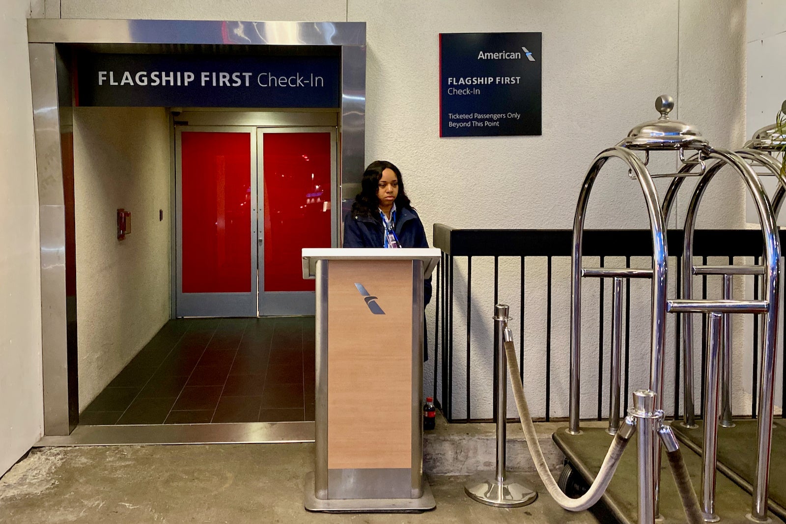 There's an agent outside guarding the door to this exclusive entrance, ready to help you with your bags.