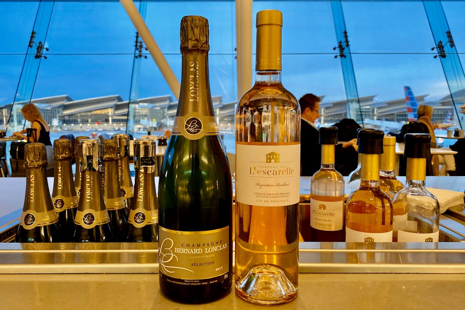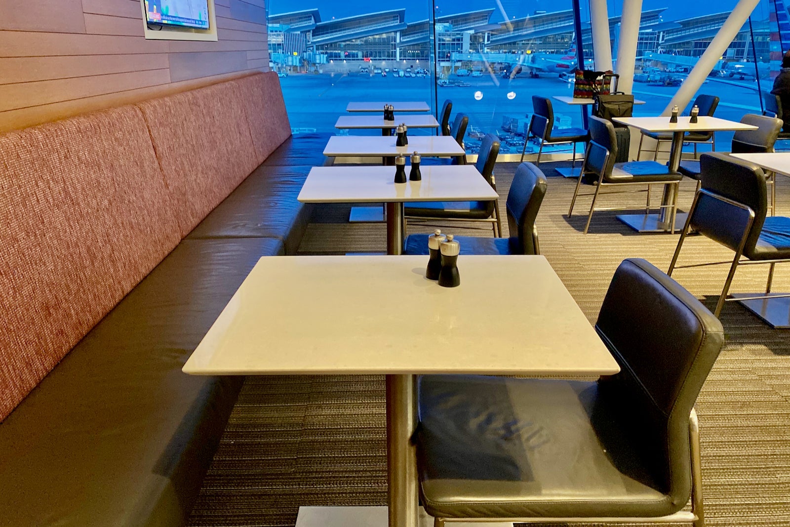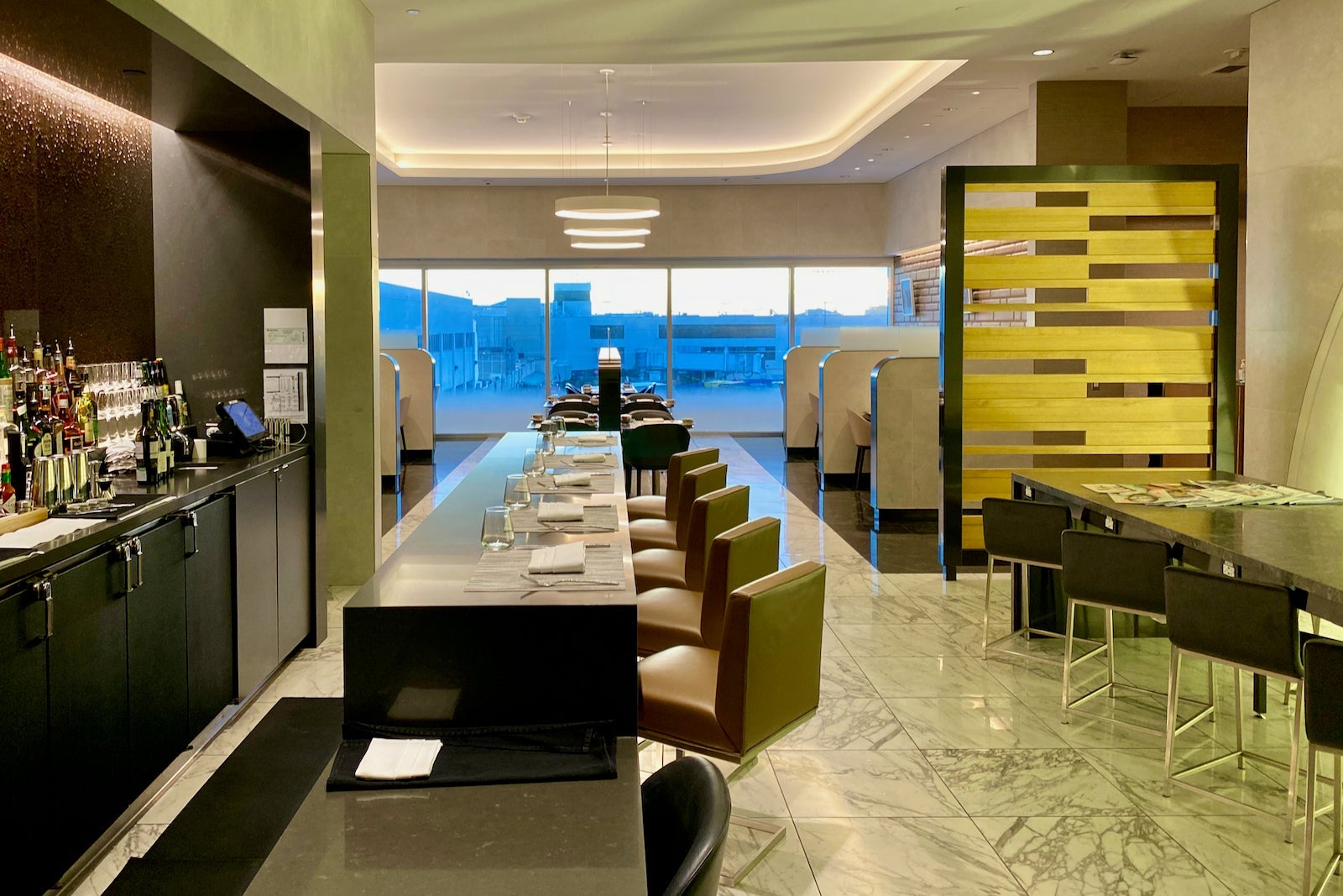 Though the dining area overlooks the ramp between Terminal 4 and 5, the bar area just overlooks the terminal.