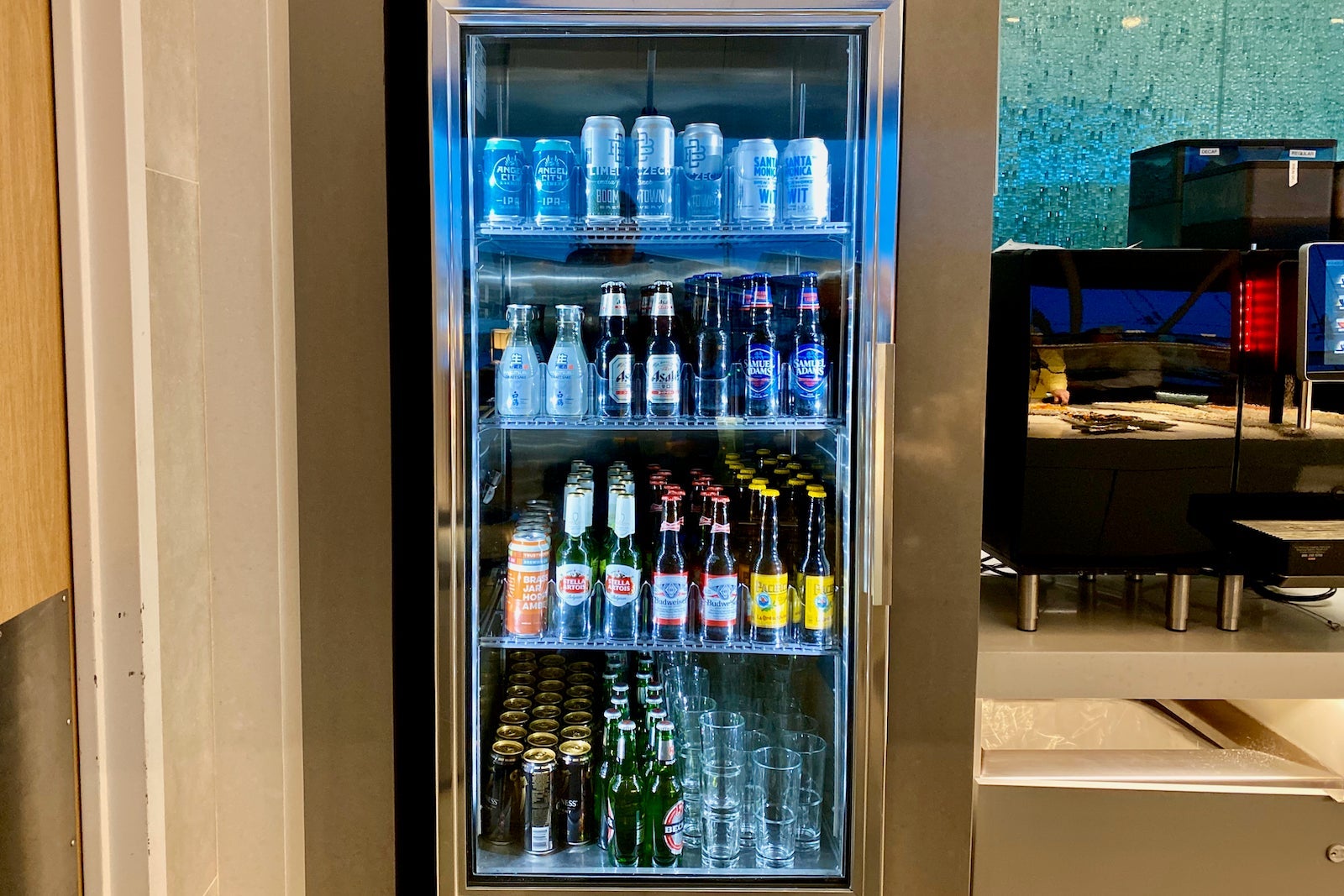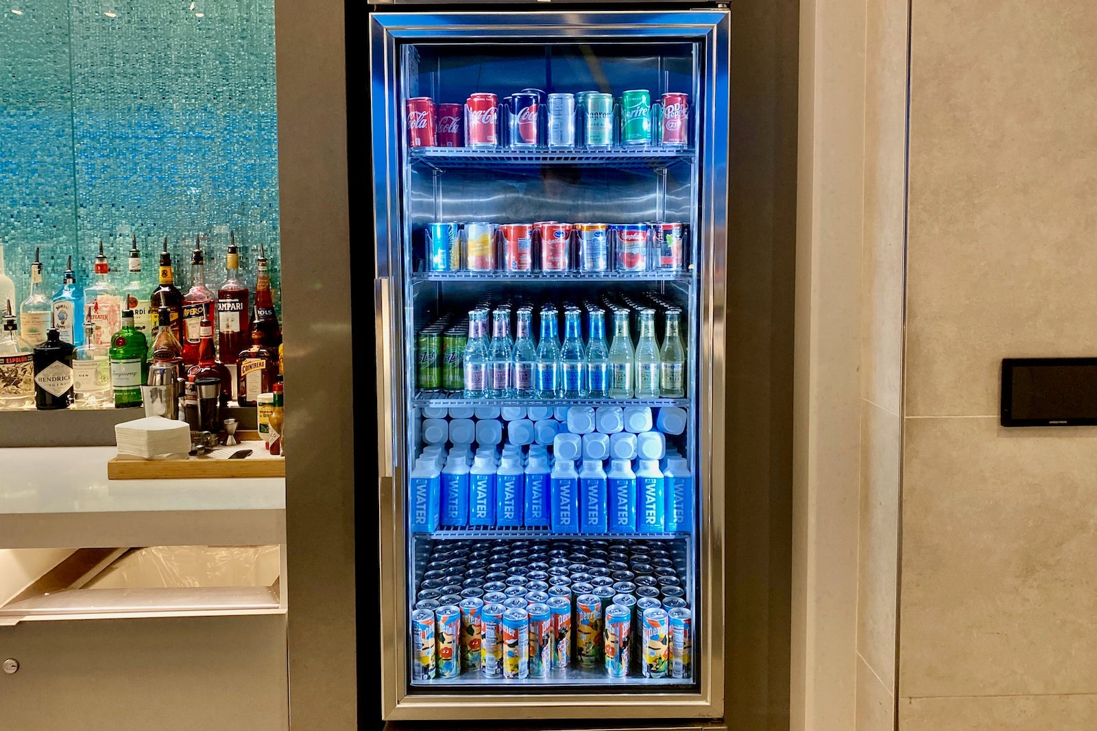 The drink selection is just as impressive as the food. The fridges were stocked with a bunch of refreshing options, including boxed Just Water, Perrier, Coke-branded soft drinks, craft beers and sake.