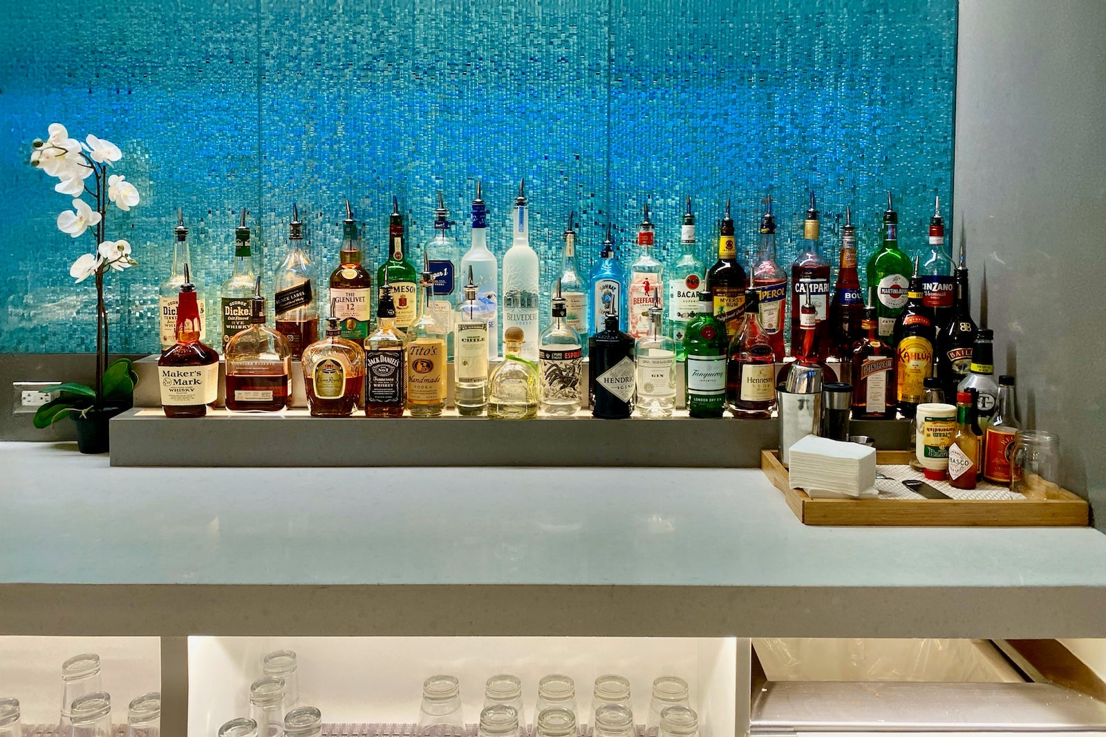 There is also an extensive self-serve bar with top-notch spirits, including Grey Goose and Black Label.