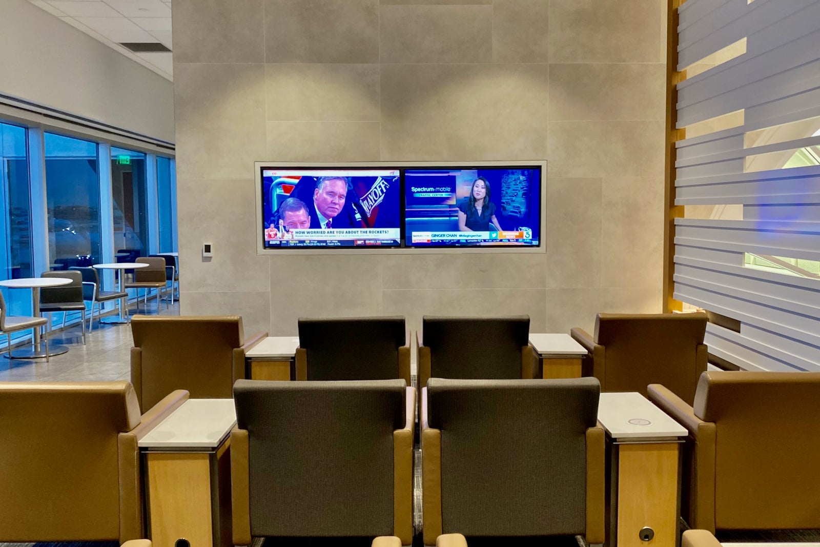 The next two are located side by side as you enter the facility. There's a bunch of reclining chairs arranged in rows in front of a TV and then another small sitting area with a variety of seating options.