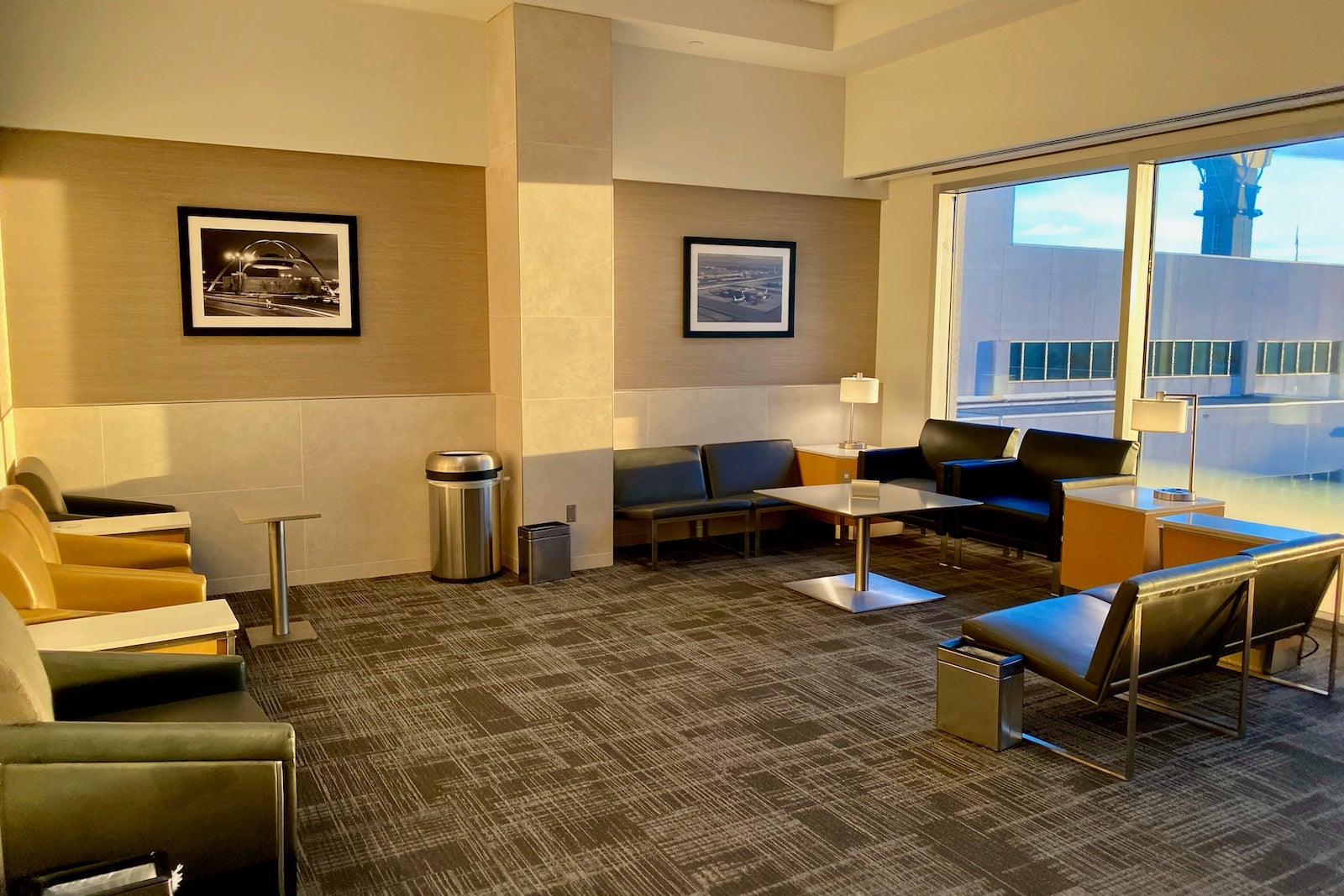 The LAX Flagship Lounge has three main seating areas. The main one is beside the buffet along the hallway facing the west side of Terminal 4 and Tom Bradley International Terminal.