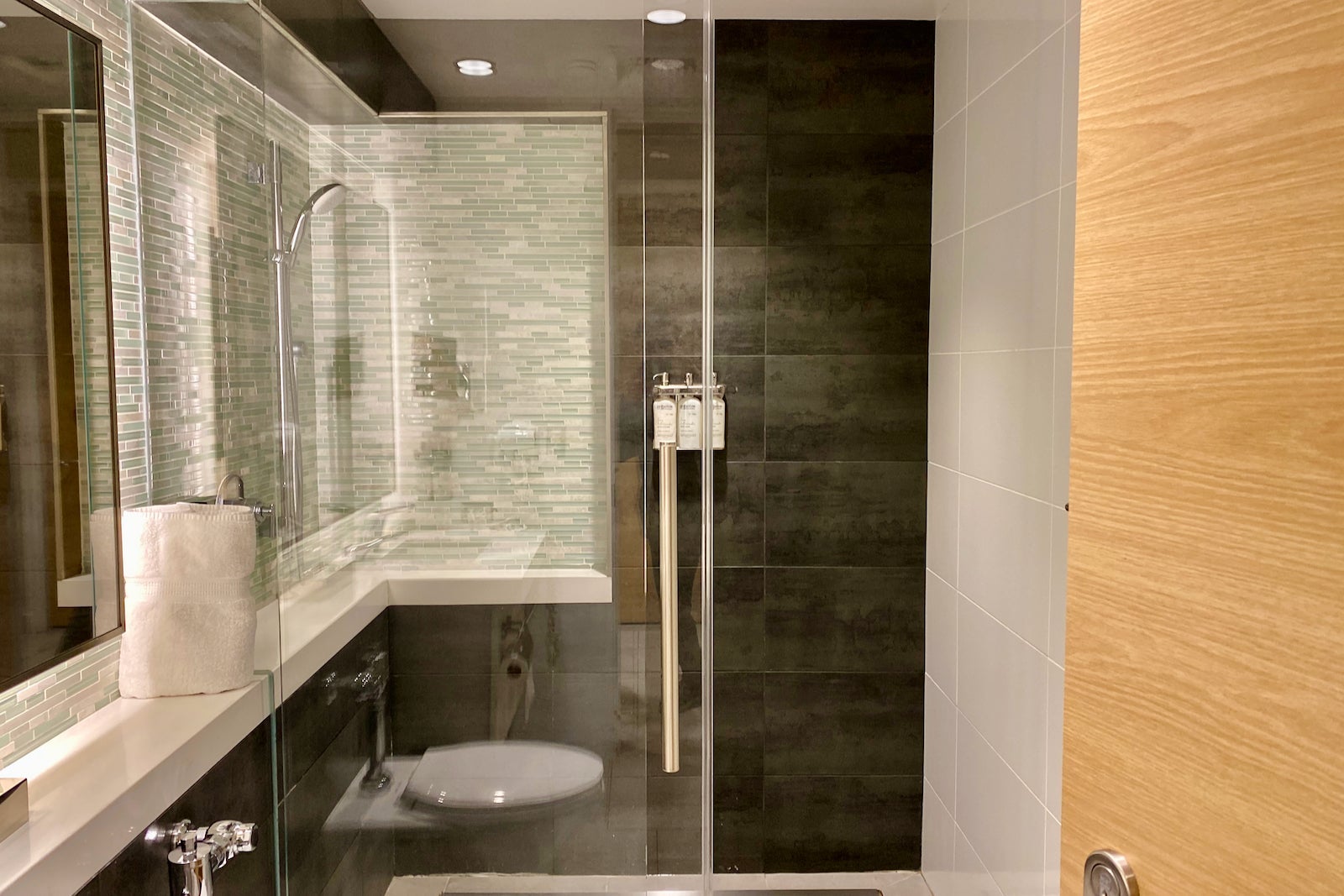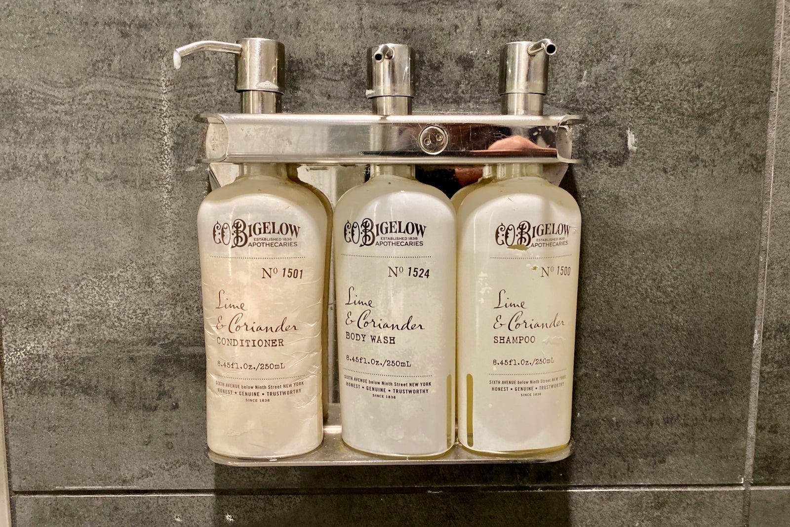 Each shower was stocked with C.O. Bigelow amenities, though it is much smaller than those in the United Polaris Lounge.
