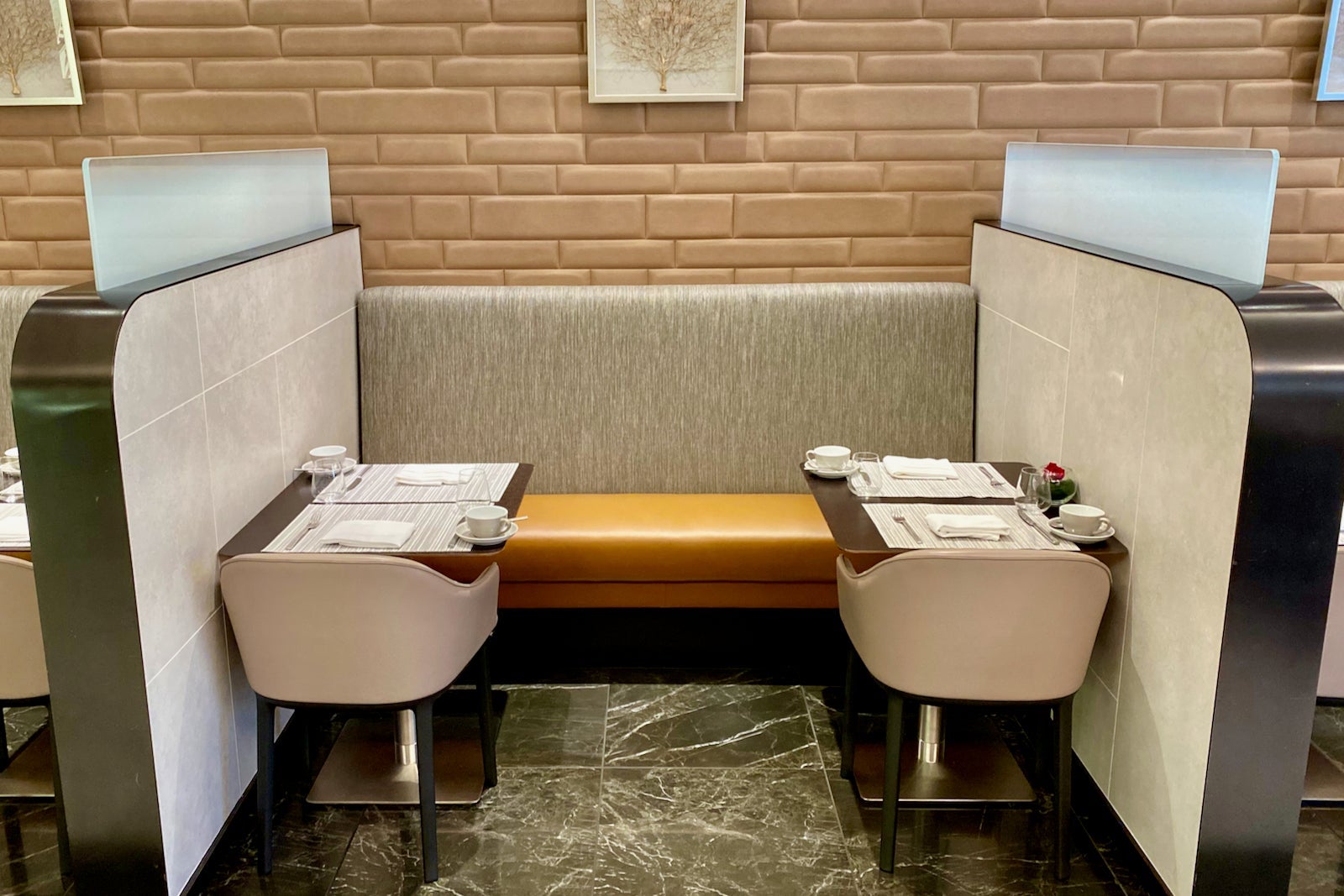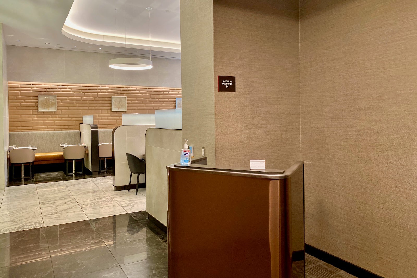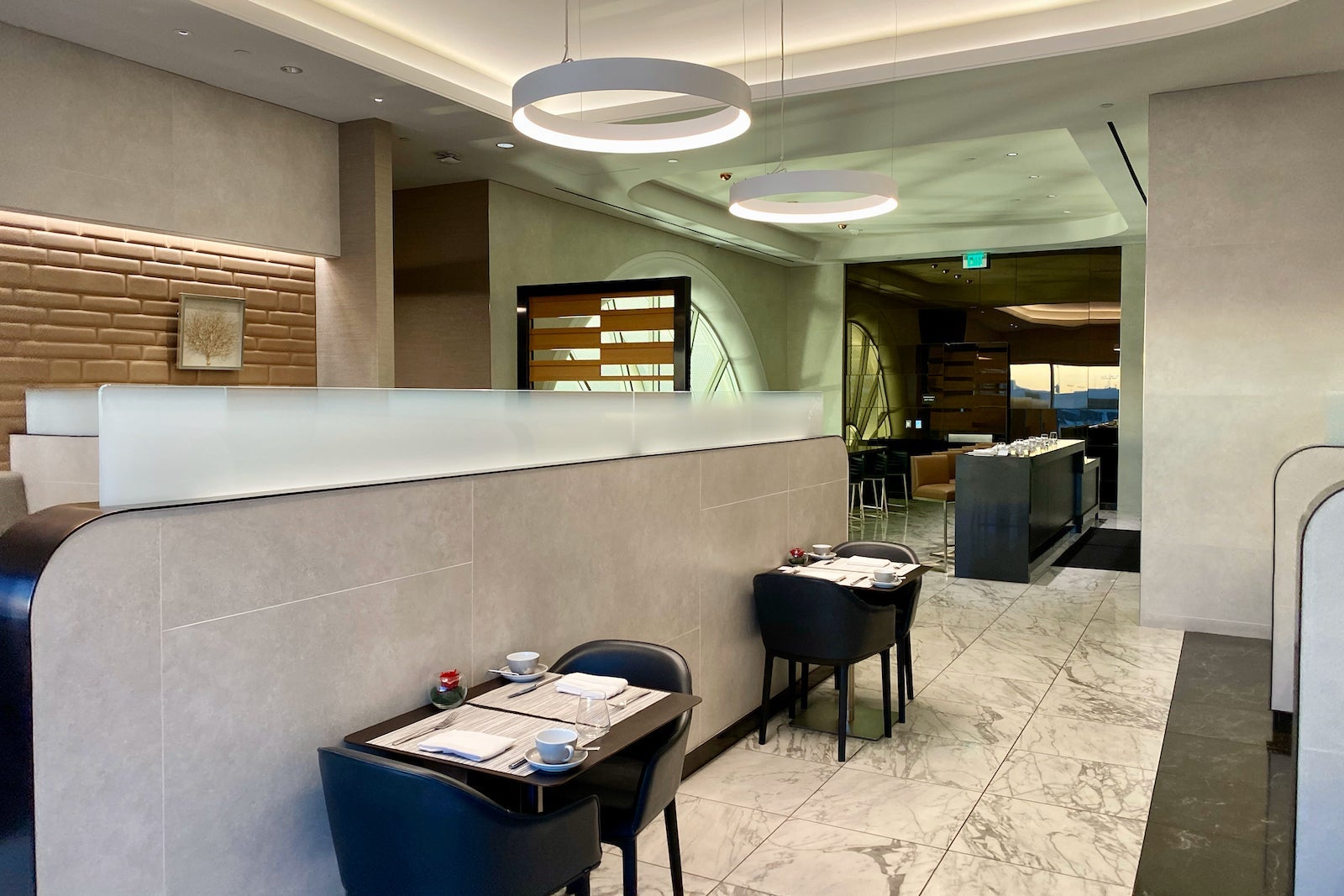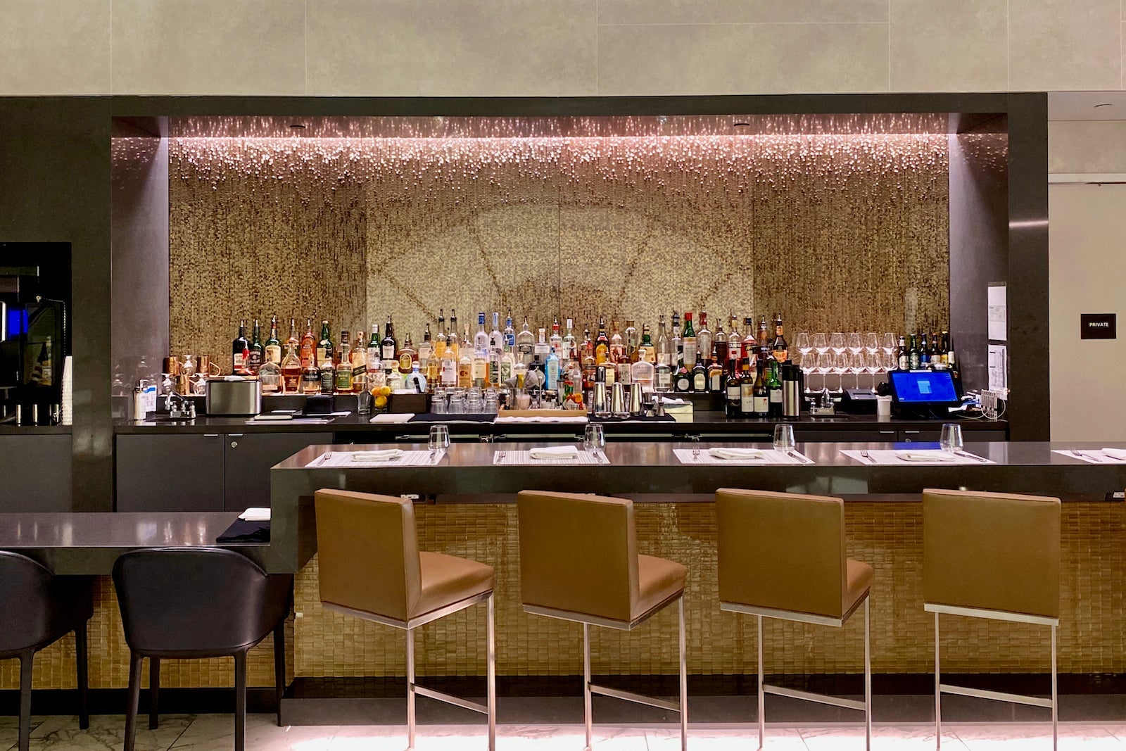 This beautifully designed space is located all the way at the end of the Flagship Lounge next to the relaxation area. It has frosted-glass doors, and behind them sits AA's most premium lounge experience.