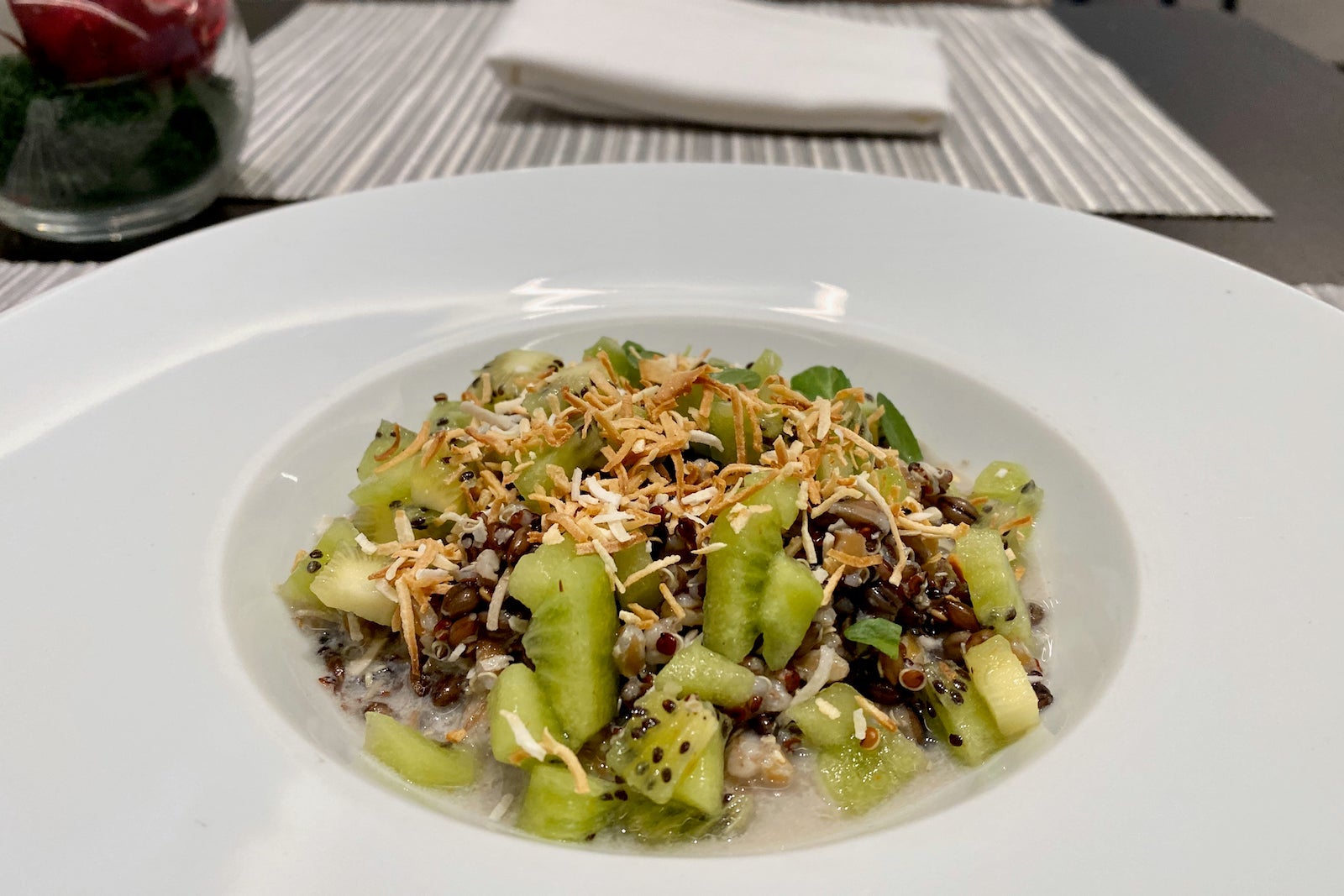 Breakfast is served from opening at 4:30 a.m. until 11 a.m., when the menu transitions to all-day dining. I tried the ancient-grain bowl and an omelet with potatoes for breakfast, both cooked to order and delicious.