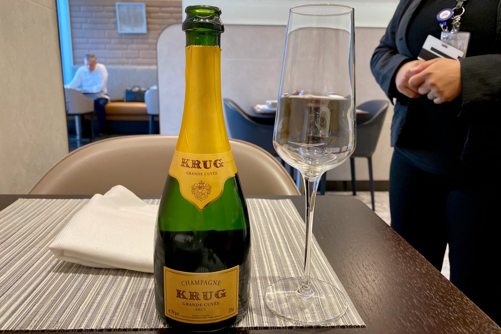 Perhaps the best-kept secret of Flagship First Dining is the Krug champagne on offer. When I ordered and they brought it, pouring a glass and then asking if I wanted to keep it on the table or not, I closed my eyes for a moment and pretended that I was flying with Singapore, not AA.