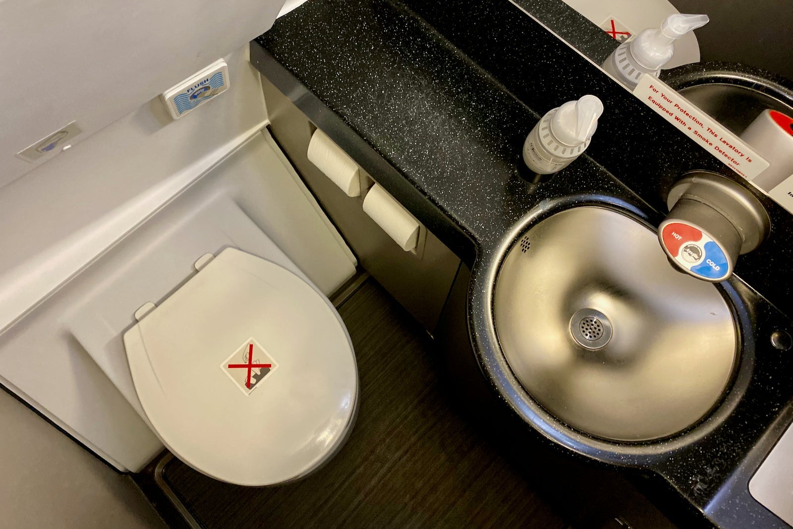 There's one standard-size lavatory in front of Row 1 outfitted with C.O. Bigelow hand soap.