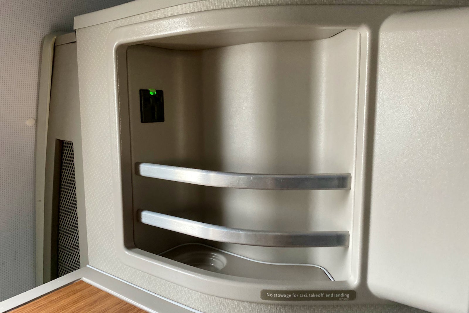 Each seat features a universal AC port and USB outlet. Among the travel hacks I post on my Instagram (follow me!), is a recommendation to always travel with an international power adapter, even when flying domestically. This was especially true on this flight since my charging brick kept falling out of the port when using the standard U.S. two-prong adapter. I quickly switched to the European duckhead, and I was able to charge my devices without an issue.