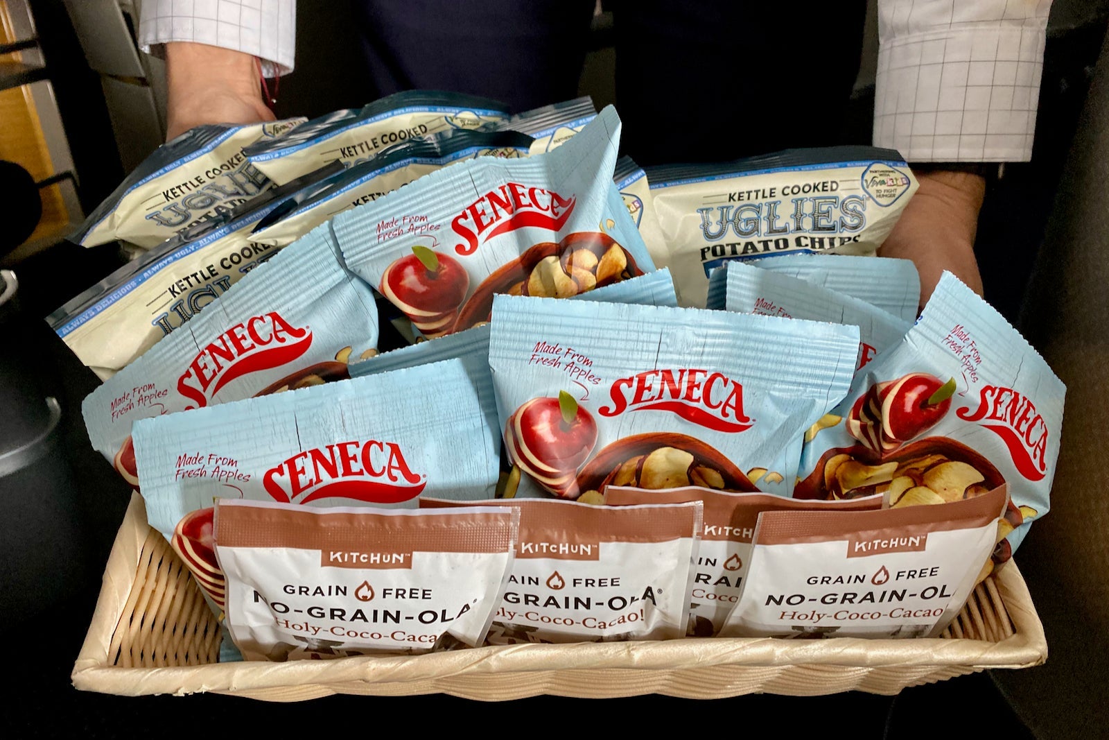First came the snack basket, which was stocked with a grain-free granola, apple crisps and potato chips. And then came the feature presentation — AA's signature warm cookies.