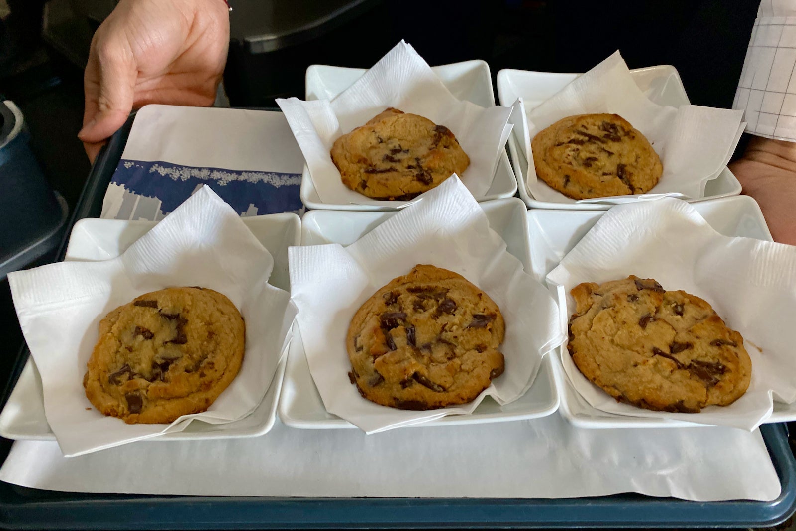 I then took a brief nap and woke up about 90 minutes before arrival to the smell of warm chocolate chip cookies wafting through the aisles. This meant that it was time for the prearrival snack.