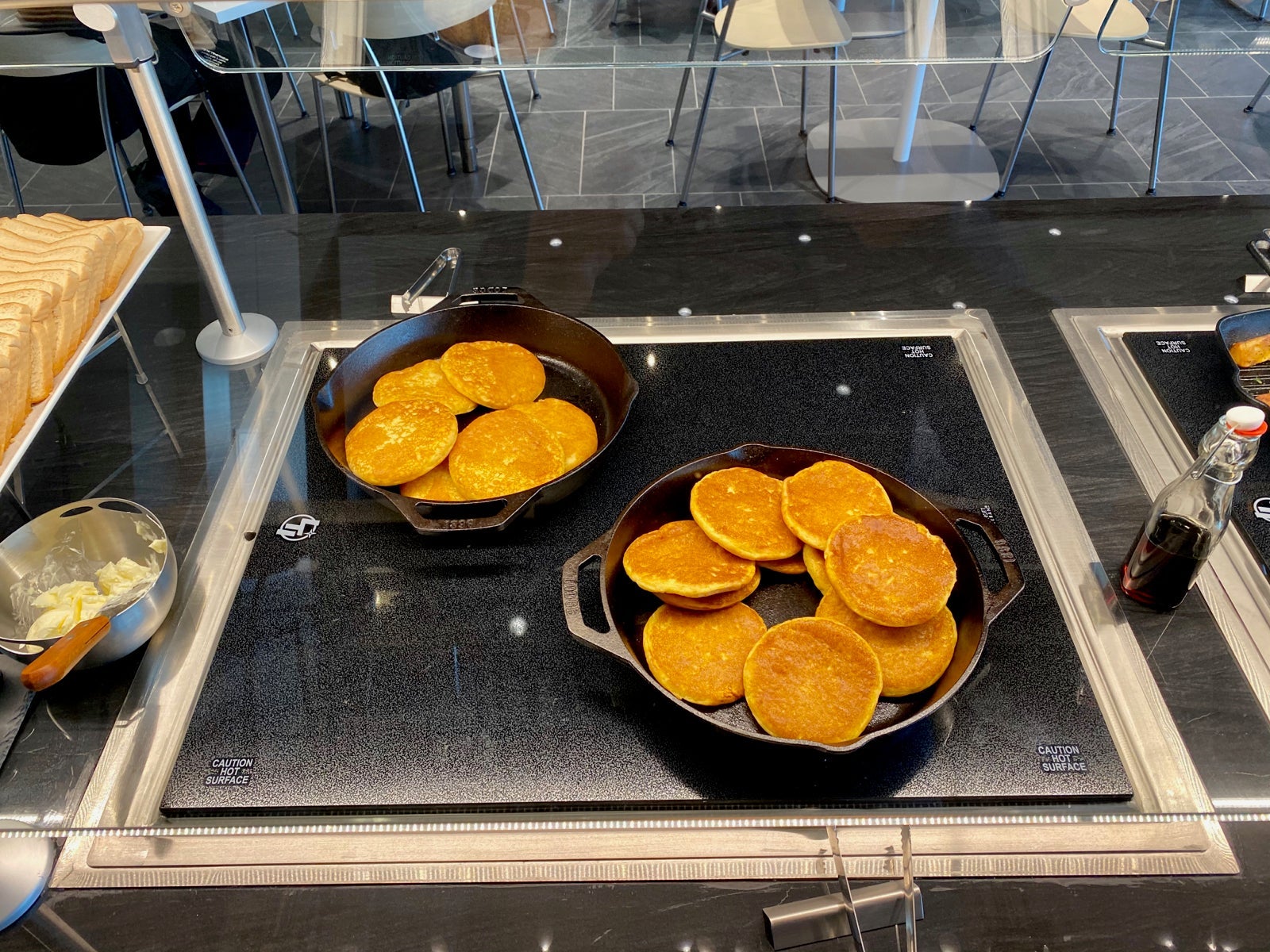 There was a selection of breakfast breads, pancakes, eggs and chorizo in individual skillets, potatoes, a yogurt and fruit bar, and oatmeal station.