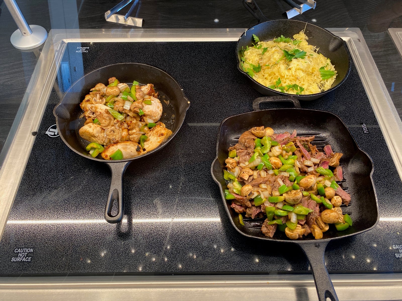 The all-day options were tortilla soups, three salads, pollo asada, grilled flat iron steak, spaghetti squash, corn bread and tres leches.