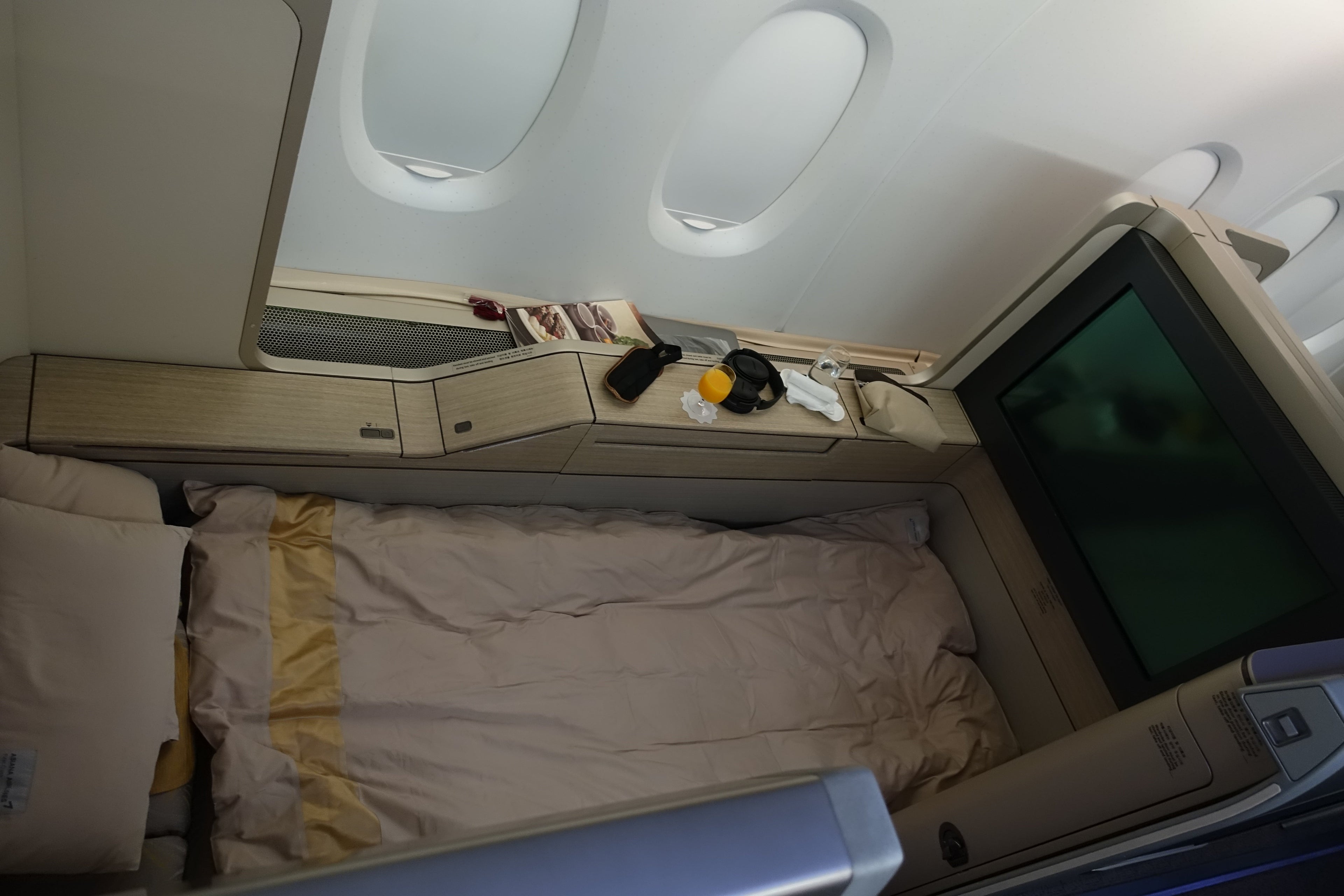 The seat reclined fully to become a flat bed — I was clearly very comfortable here.