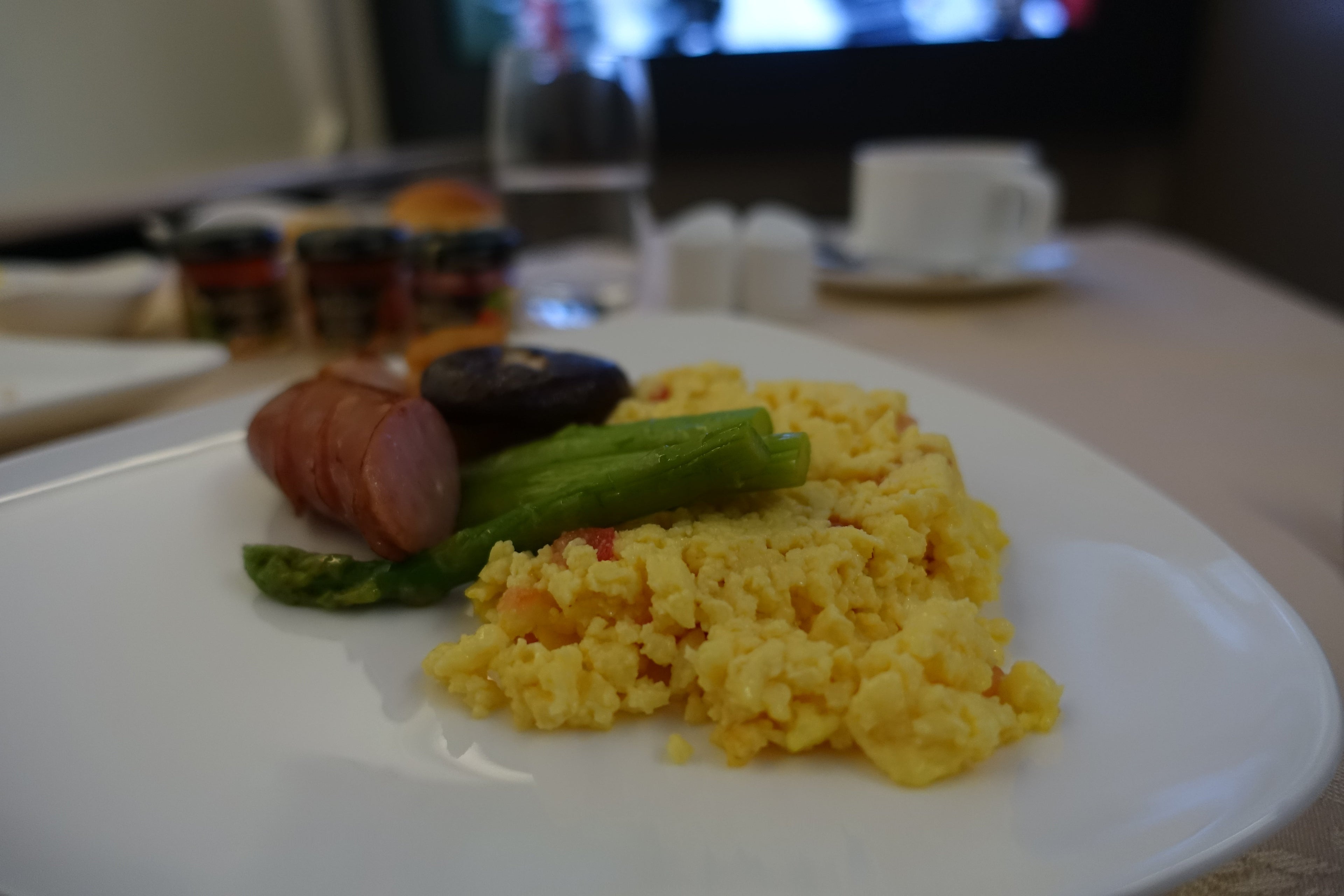 For breakfast, I opted for the Western option: eggs, fresh fruit, Danish pastries and yogurt. Sometimes eggs on a plane can be rubbery, but these were actually pretty good.