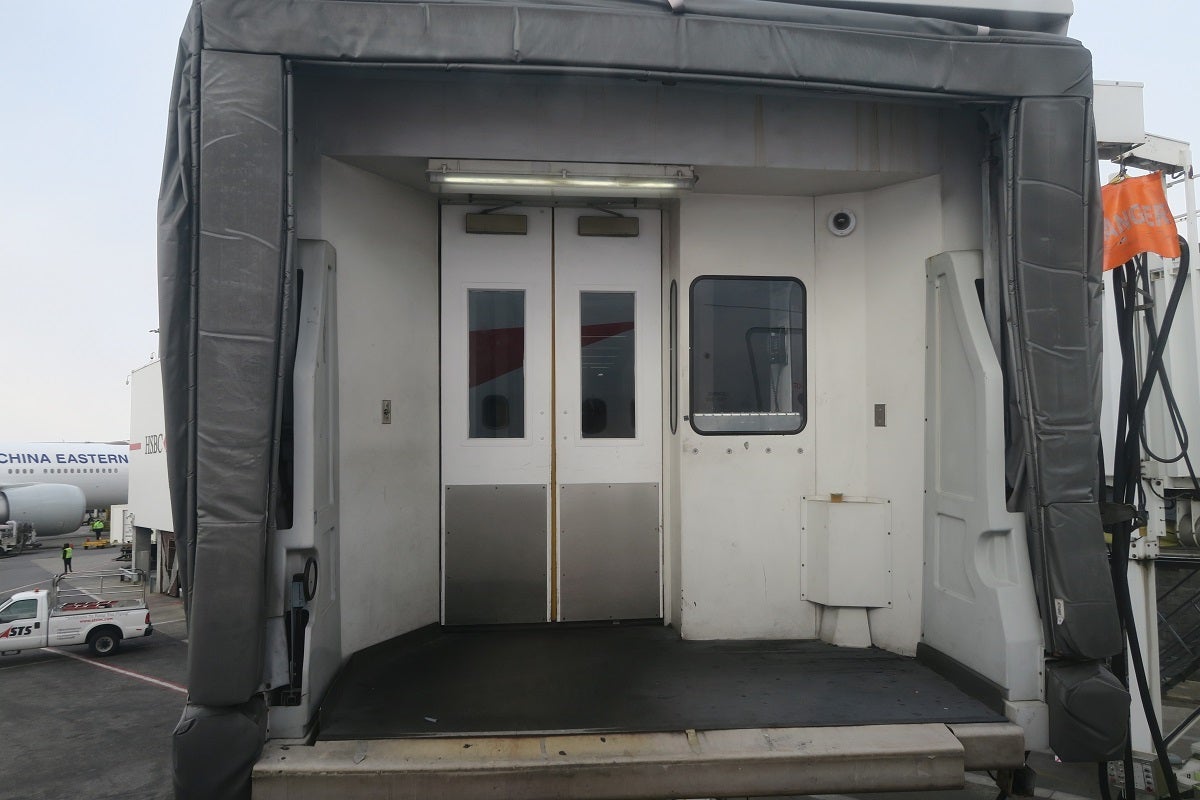 Boarding began with business-class passengers 17 minutes after schedule. Strangely, I didn't see any secondary US security checks being done at this point, there didn't seem to be any pre-board passengers and families weren't invited to board ahead of time. Due to the layout of the airport, it's quite a hike down the escalators and through a long jet bridge to get to the plane. Despite the late boarding start, we still pushed back a few minutes ahead of our scheduled departure time.