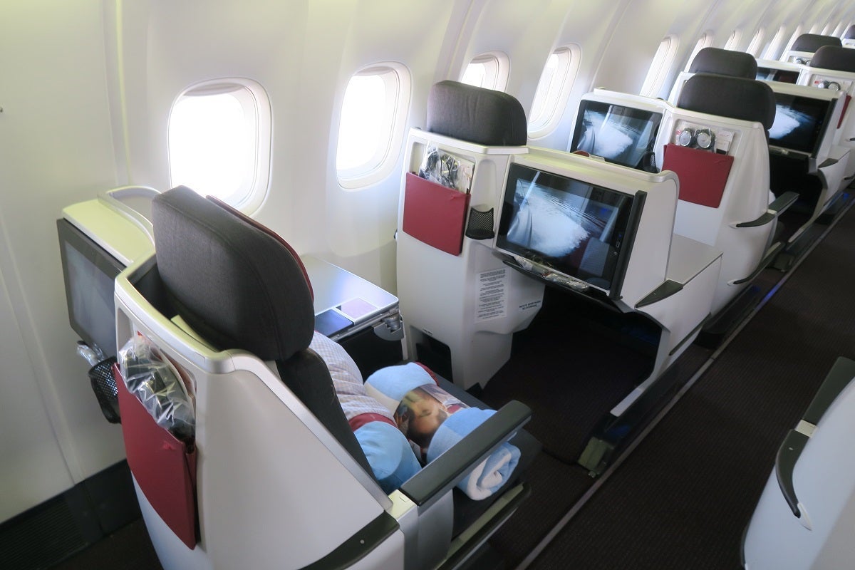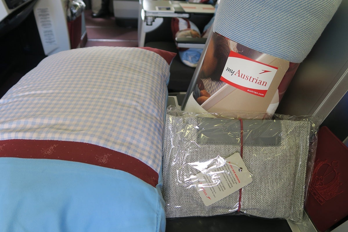 The seats were stocked with a full-size pillow, a thick rolled-up blanket, an amenity kit and noise-cancelling headphones.