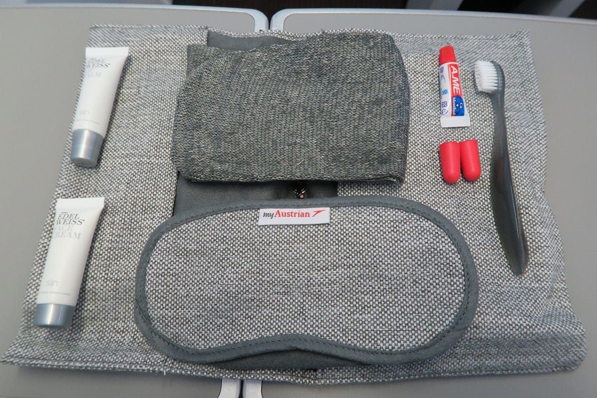 The amenity kit contained a face mask, socks, a plastic-wrapped toothbrush and toothpaste, plastic-wrapped earplugs, lip balm and face cream.