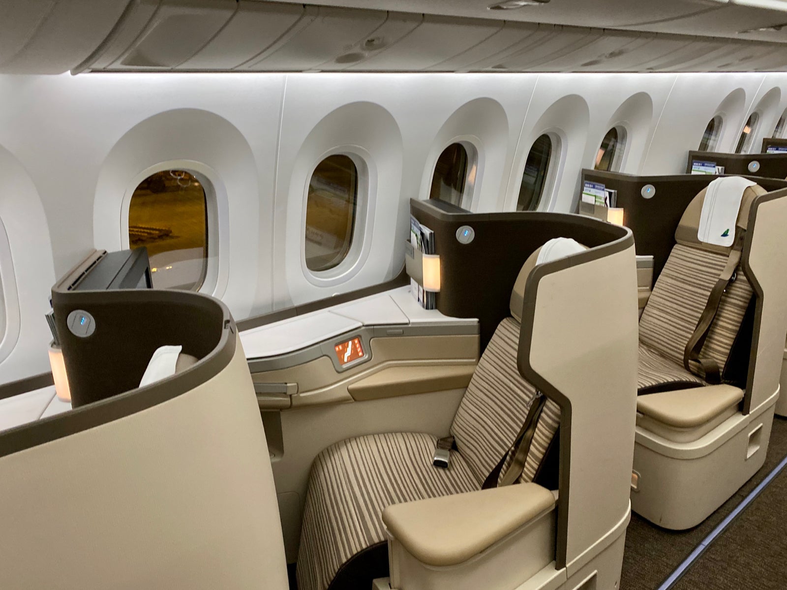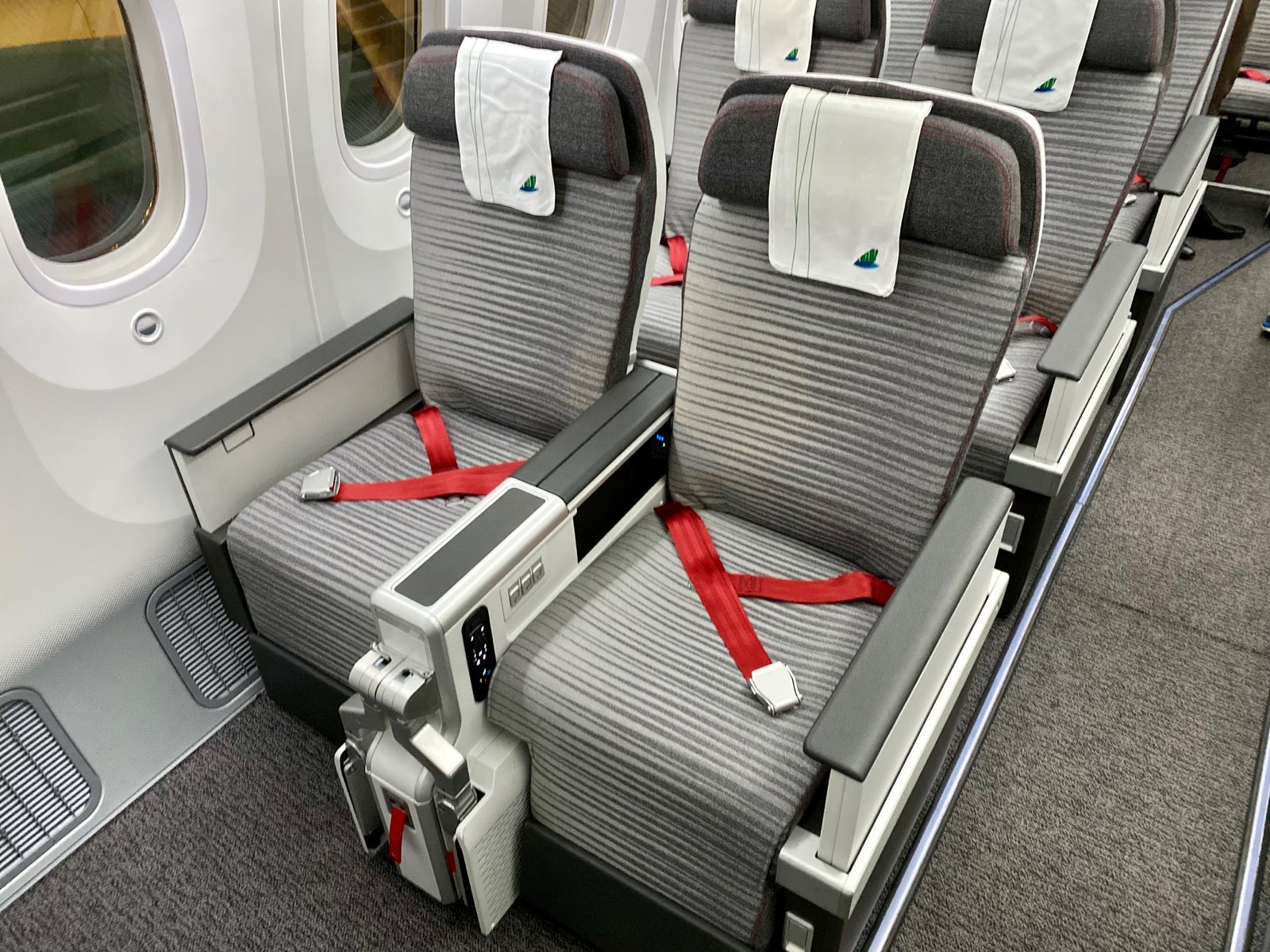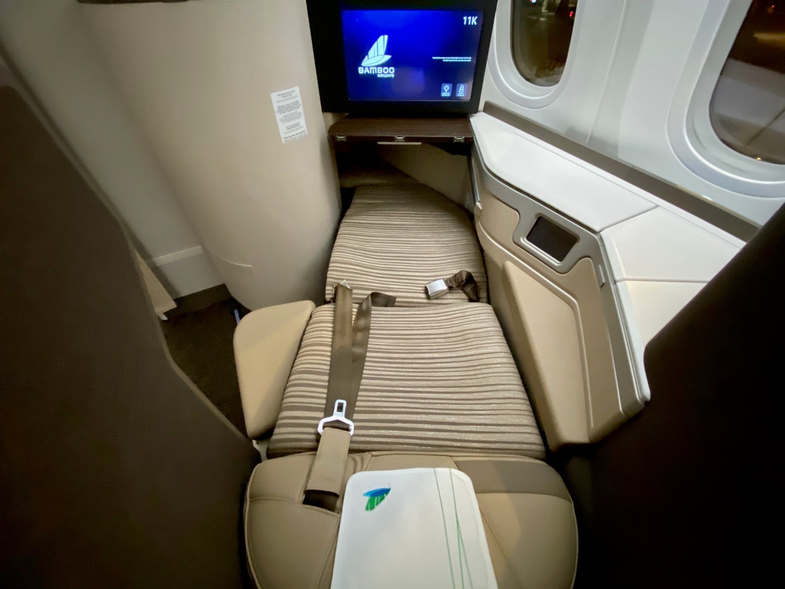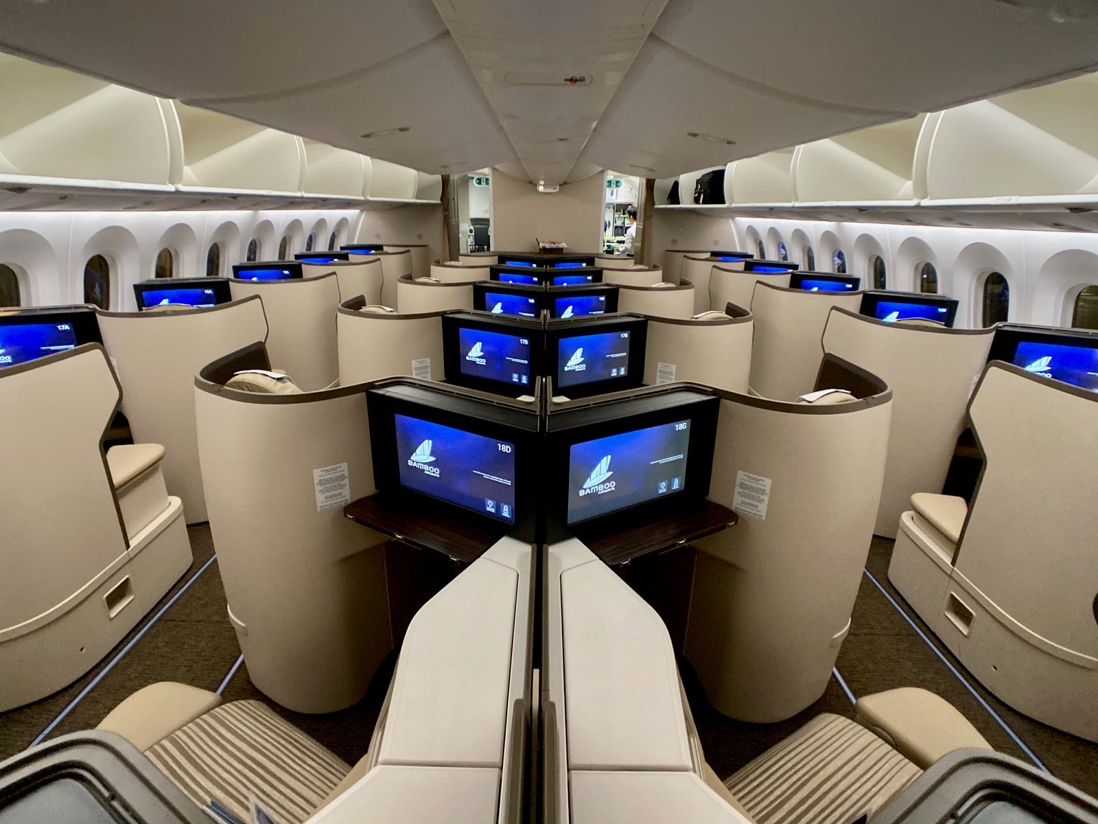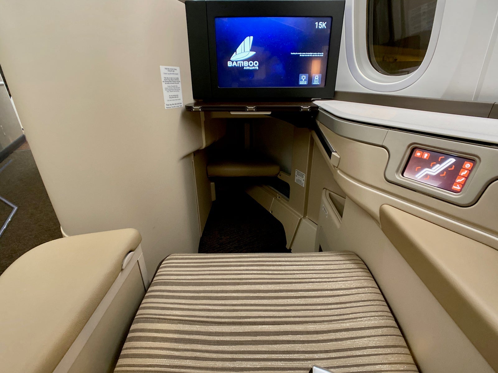 The plane, delivered from Boeing's assembly plant in Charleston in December, still smells new. The airline chose a three-cabin configuration with business, premium economy and economy class for this aircraft. Based on leaked seat maps, Bamboo plans to install first class suites on future 787s. (There is currently no way to use credit-card points or partner miles to book Bamboo flights, although the airline does have a frequent-flyer program.)