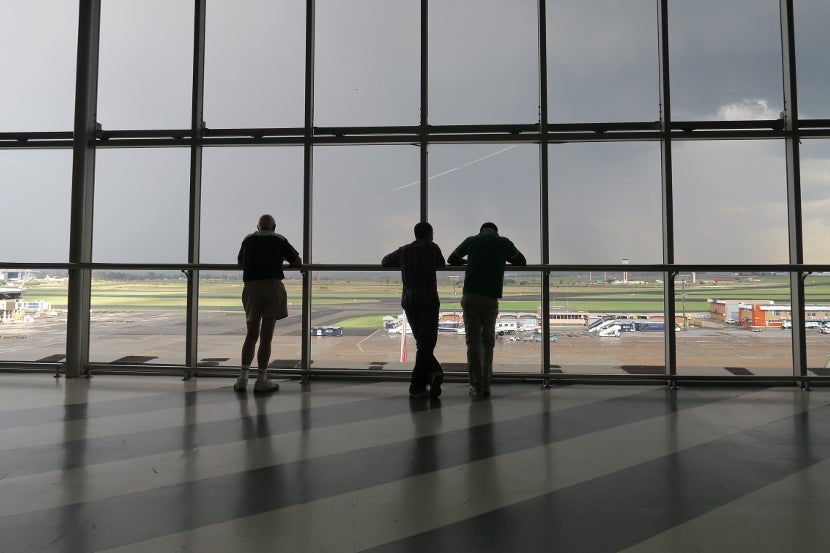 Once at JNB, I followed signs, walking past many support offices, to a free "Aircraft Viewing Deck," which featured exhibits as well as a nice view of the airfield — but oddly enough had just one seat! If you have some time to kill at JNB, I highly recommend checking out the viewing deck.