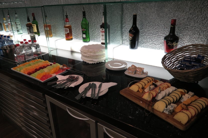 There were no airfield views in the lounge so I settled for a seat overlooking the main concourse. The lounge was small and certainly filled in before the A380 left for LHR. Despite its rather small size, there was an impressive variety of soups, desserts and snacks on offer — among them were chicken and pasta, spinach and squash lasagna, deli meat and cheese platters and take-away sandwiches. There were many vegetarian and vegan options as well, which British Airways always seems to be good about providing and labeling in their lounges.