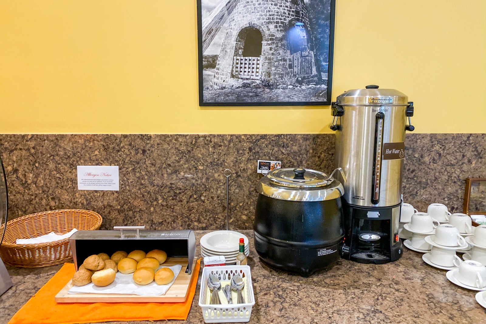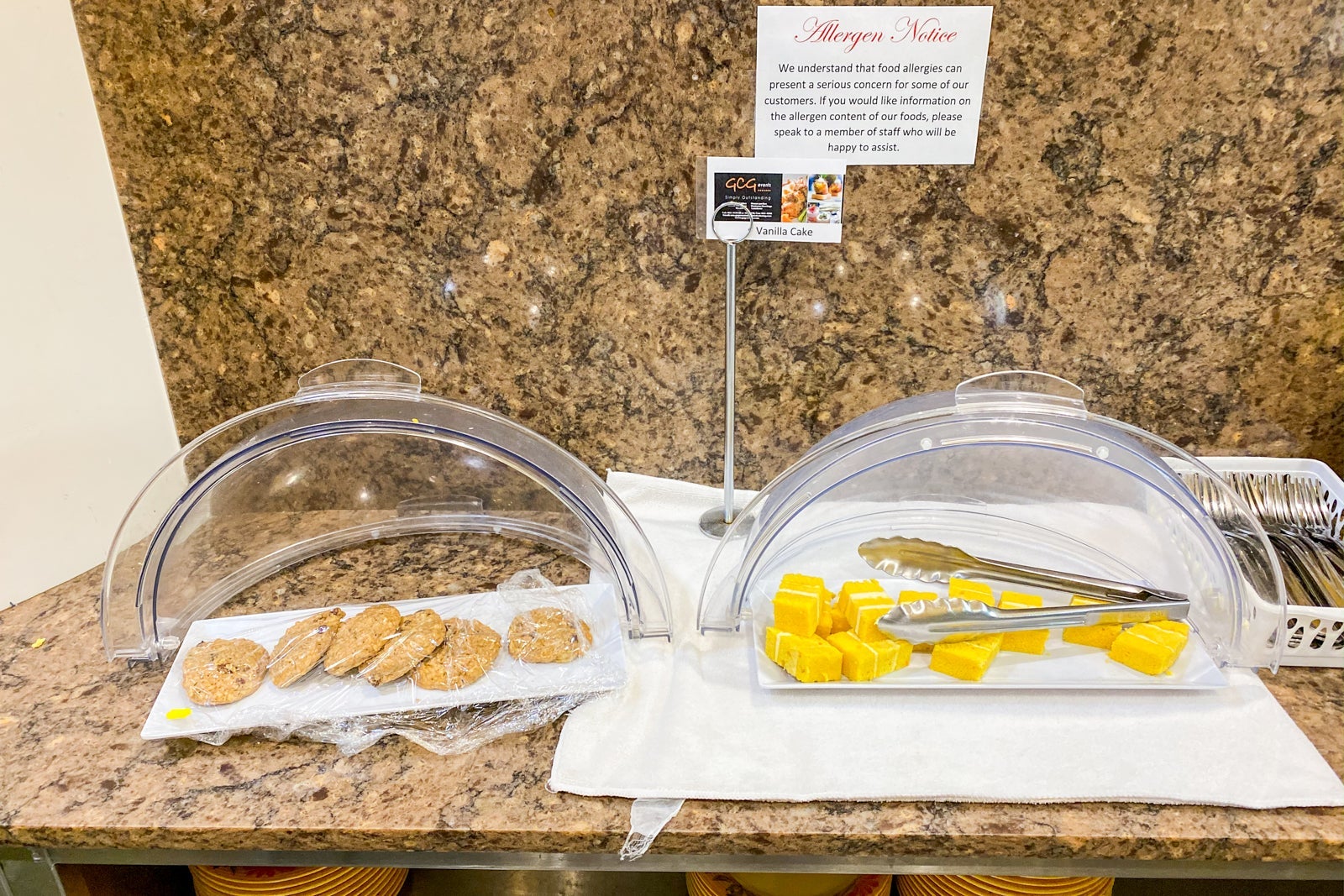 Given how few daily flights the Antigua airport handles, it's not surprising that the lounge was empty. The lounge had a minimal buffet and none of the food options looked particularly appetizing.