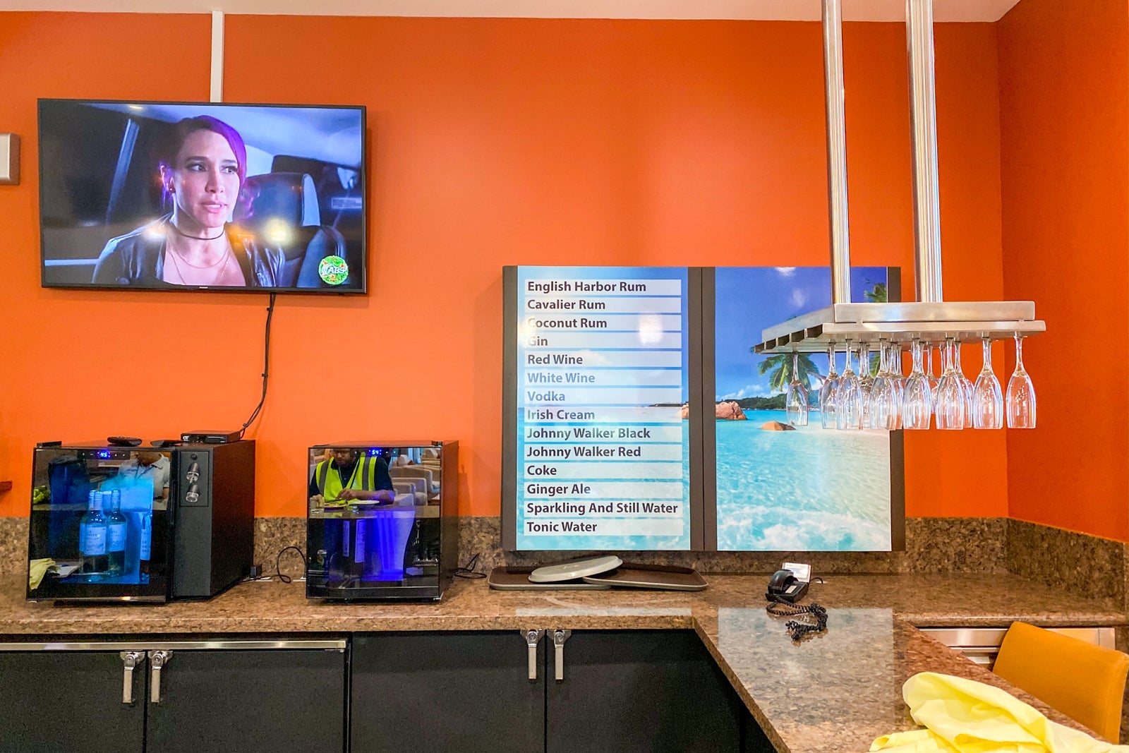 There was also a bar, which offered an assortment of soft drinks and alcohol. Admission to the lounge included three drink coupons for house wine and beer. Anything more than that (as well as top-shelf liquor) was chargeable.