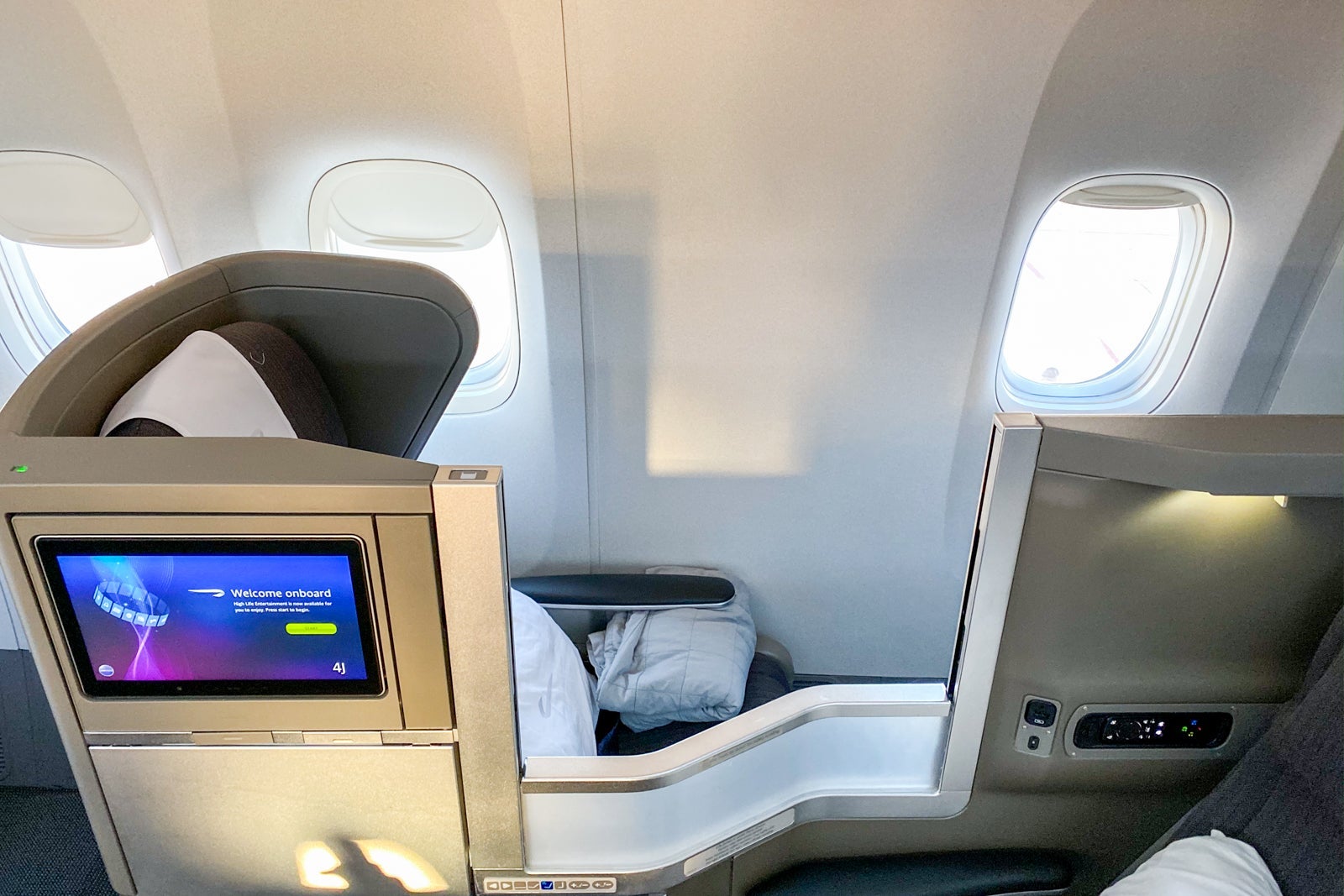 The Club World cabin on the Gatwick-based 777 is cozy. There are only 32 seats, spread across four rows. I took Christian Kramer's advice and pre-assigned myself Seat 4K, only to realize that there was a window missing. Since my inflight entertainment on this flight was going to consist of me looking out the window, this wasn't going to fly. Fortunately, there were a bunch of empty seats, so I moved to 3K.