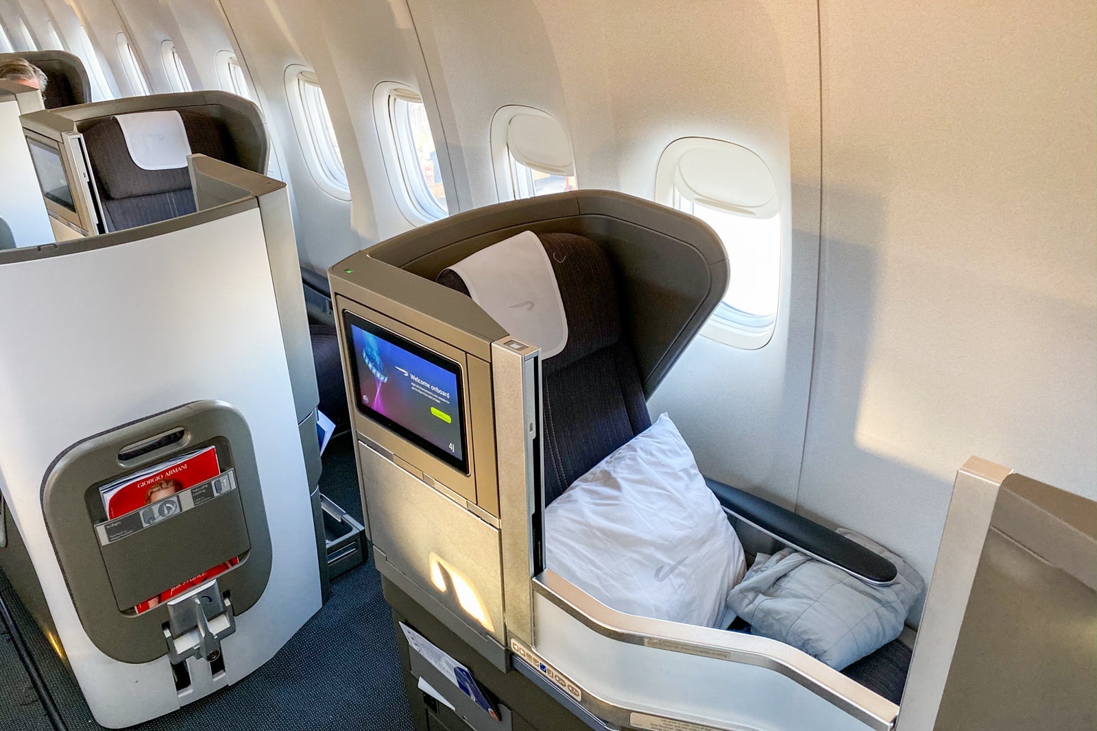 The biggest surprise was that the plane evidently didn't get cleaned in Antigua, and it showed. There was trash all over the place. In fact, the pillow, blanket and headphones on my seat had just been used by a previous passenger, so I immediately asked the flight attendant to remove them. He apologized profusely, and even brought me a fresh sleeper kit and headphones.